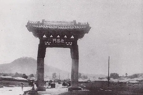 사실 독립문이 있었던 자리에는 원래 영은문이라는 문이 있었습니다. 영은문은 청나라 사신을 영접할 때 맞이하는 장소로 이용되었습니다. 기록에 의거하면 1537년에 증축되어서 1895년에 헐렸습니다. 그리고 일종의 사대주의의 상징으로 남게 되었죠. 사대주의는 '큰 나라를 섬기는' 사상을 의미합니다. 19세기에는 영은문이 일종의 청나라를 사대하는 상징적인 건물로 남아있었던 것입니다. 또한 이 내용은 1882년에 체결된 조청상민수륙무역장정에도 표현되어 있습니다.