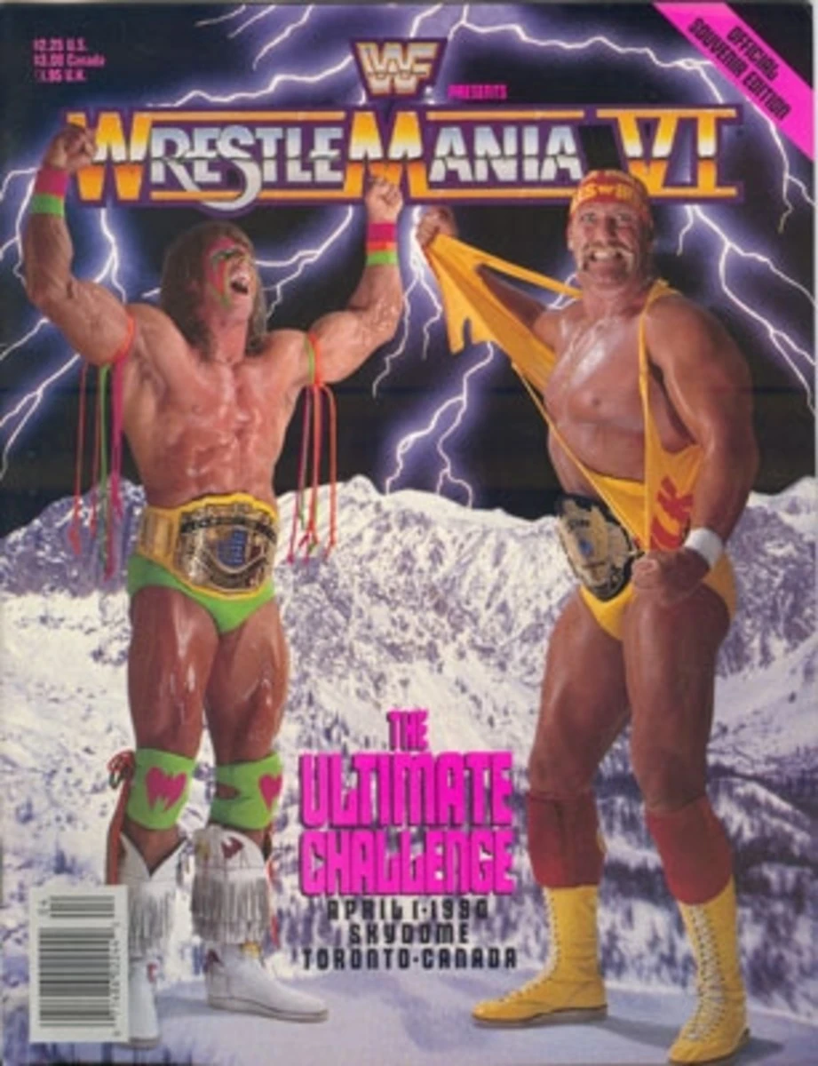워리어와 헐크호건이 격돌했던 레슬매니아6(1990)의 포스터. 출처: wrestlingnewsworld.com 얼티밋 워리어의 가장 큰 승리는 토론토 스카이돔의 WrestleMania VI에서 발생했습니다. 67,000명의 광포한 WWE 유니버스 회원들 앞에서 워리어는 WWE 명예의 전당 헌액인 헐크 호건을 꺾고 자신의 첫 번째이자 유일한 WWE 챔피언십에서 우승했습니다. 그날 밤 그는 인터컨티넨탈과 WWE 타이틀을 동시에 보유하는 드문 위업을 달성했습니다. -출처: WWE
