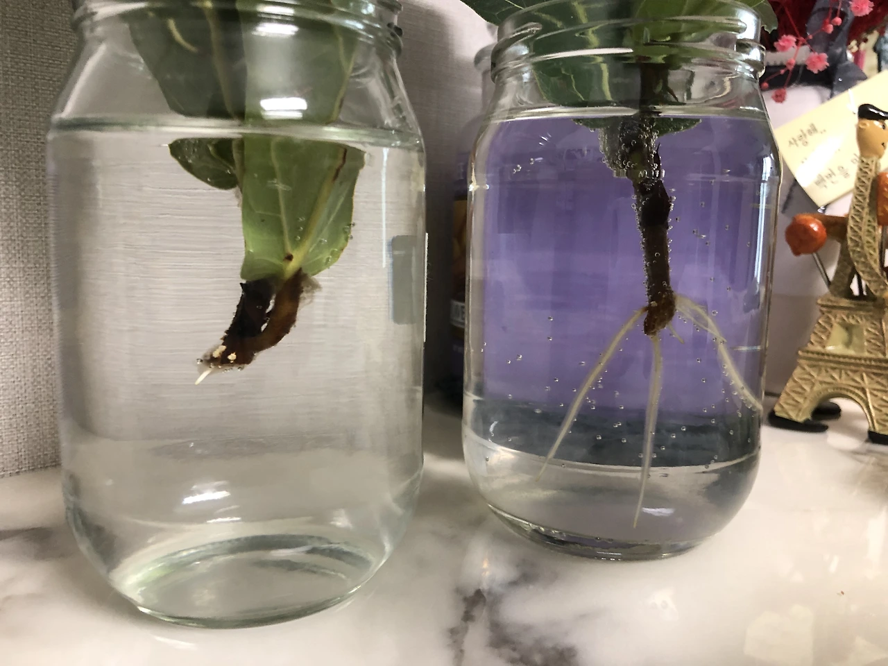 그렇게 동시에 두 개의 줄기를 물꽂이 해보기로 했다.