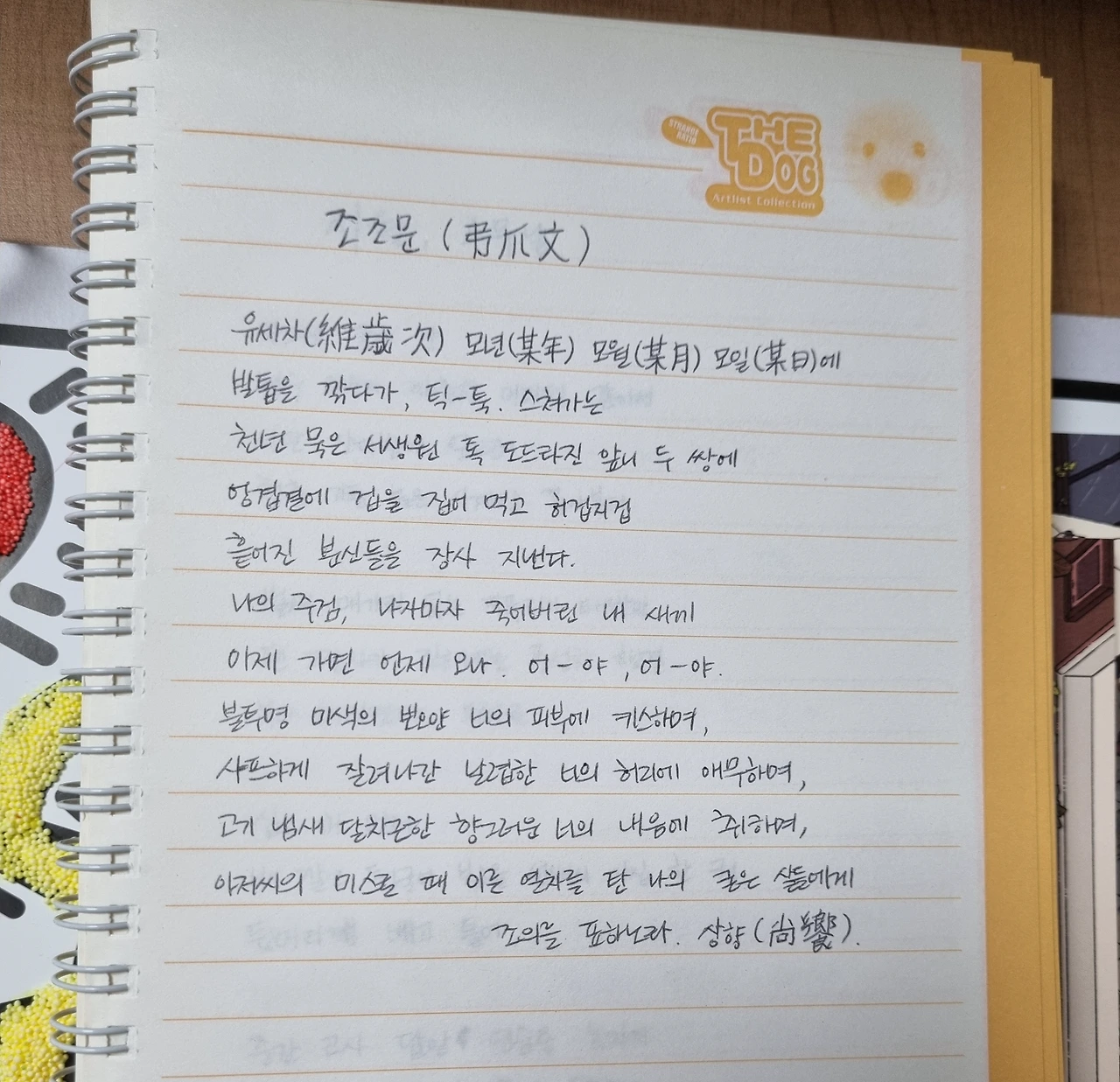 거의 의식의 흐름대로 써 내려갔는데, 다시 보니 후반부에 키스니 애무니 하는 시어들이 좀 튄다. 쉼표와 마침표 같은 구두점도 너무 많다. 마지막 행에 나오는 '아저씨'는 사실 손톱깎이를 의인화한 것인데 나만 알고 저렇게 써놓았다. 대관절 무슨 아저씨인지 설명도 없다. 엉터리 시인 언니버서리의 엉뚱한 시가 이렇게 남아 있다.