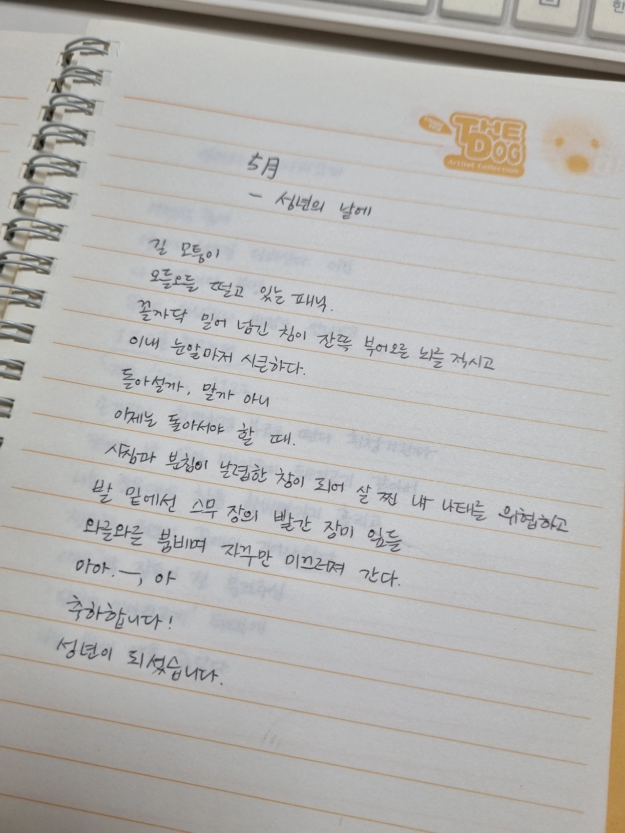 주변에서는 빨간 장미꽃으로 성년의 날을 축하해주는데, 정작 나는 그것을 그저 편안하게 즐겁게 받아들이지 못하고 있었다. 정신적으로 아직 어른이라고 생각하지 않았을 수도, 어른됨의 의미를 너무 크고 무겁게 생각해서 지레 겁을 먹었을 수도 있다. 어쩌면 둘 다이지 않았을까.