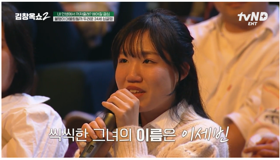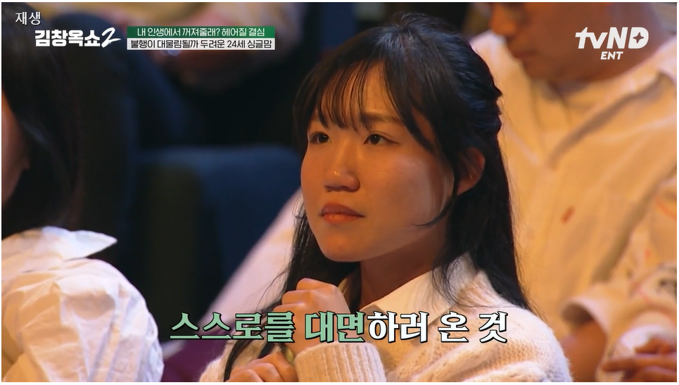 비겁한 전남편과 달리 그녀는 도망치지 않았다. 자기 앞에 놓인 이 커다란 문제를 명징하게 직면하고자 방송에 나왔다. 김창옥 교수는 이렇게 사연을 보내고 방청을 신청한 것 자체가 '김창옥'을 만나러 온 것이 아니라, '자신'을 대면하러 온 것이라고 말했다. 문제를 해결할 근원적인 힘 없이는 결코 할 수 없는 일이라고 아직 눈가가 촉촉한 그녀에게 명확히 짚어주며 이야기를 시작했다.