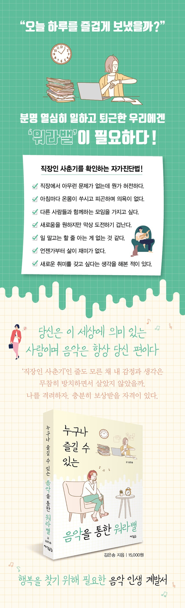 워라밸의 삶을 산다면 점점 일에 지쳐가는 주변의 친구들과는 달리 당신의 얼굴에 생기가 돌 것이다. 나를 위한 시간으로 새로운 것에 대한 도전은 그만큼 강한 원동력을 선사한다.