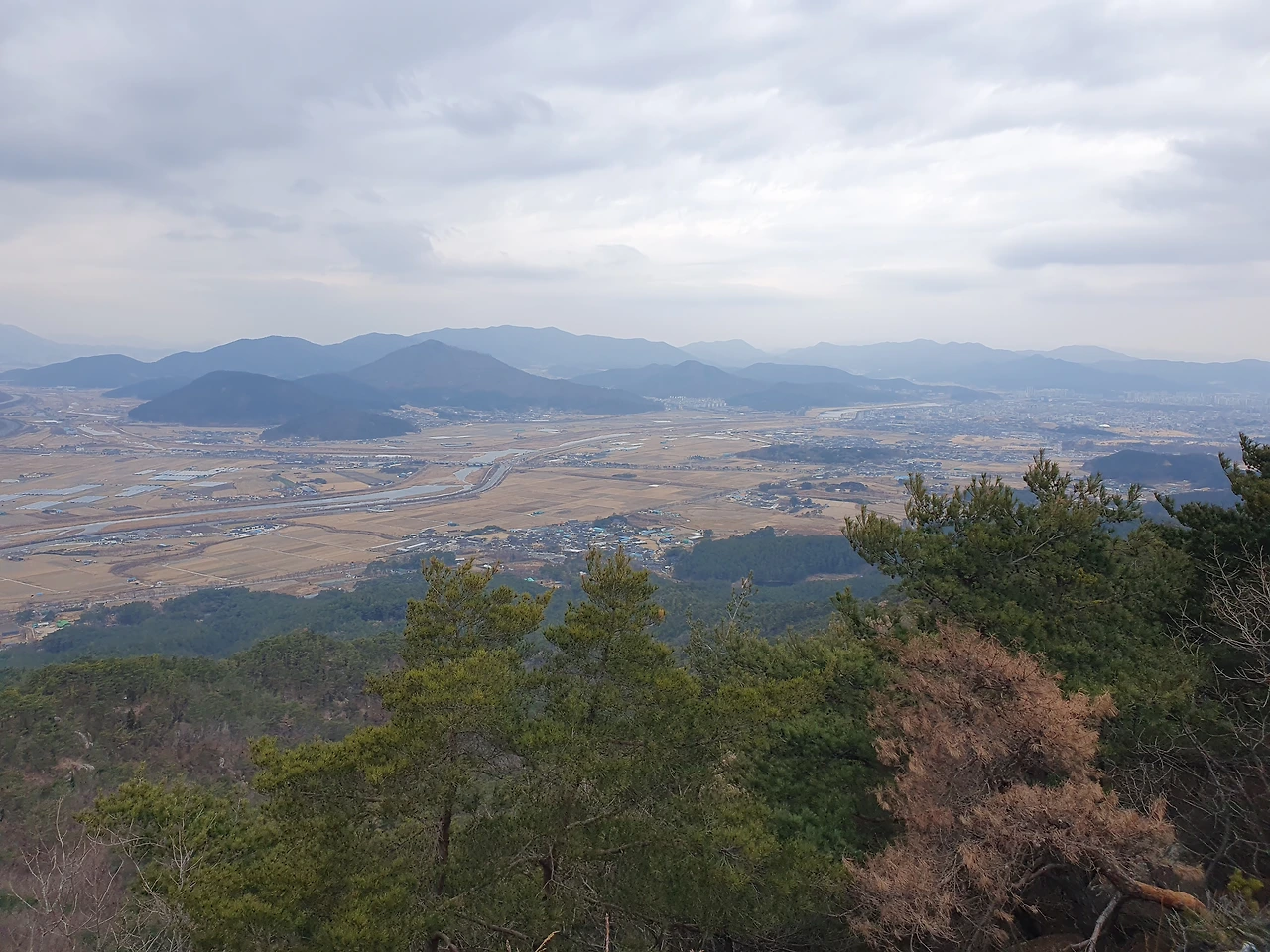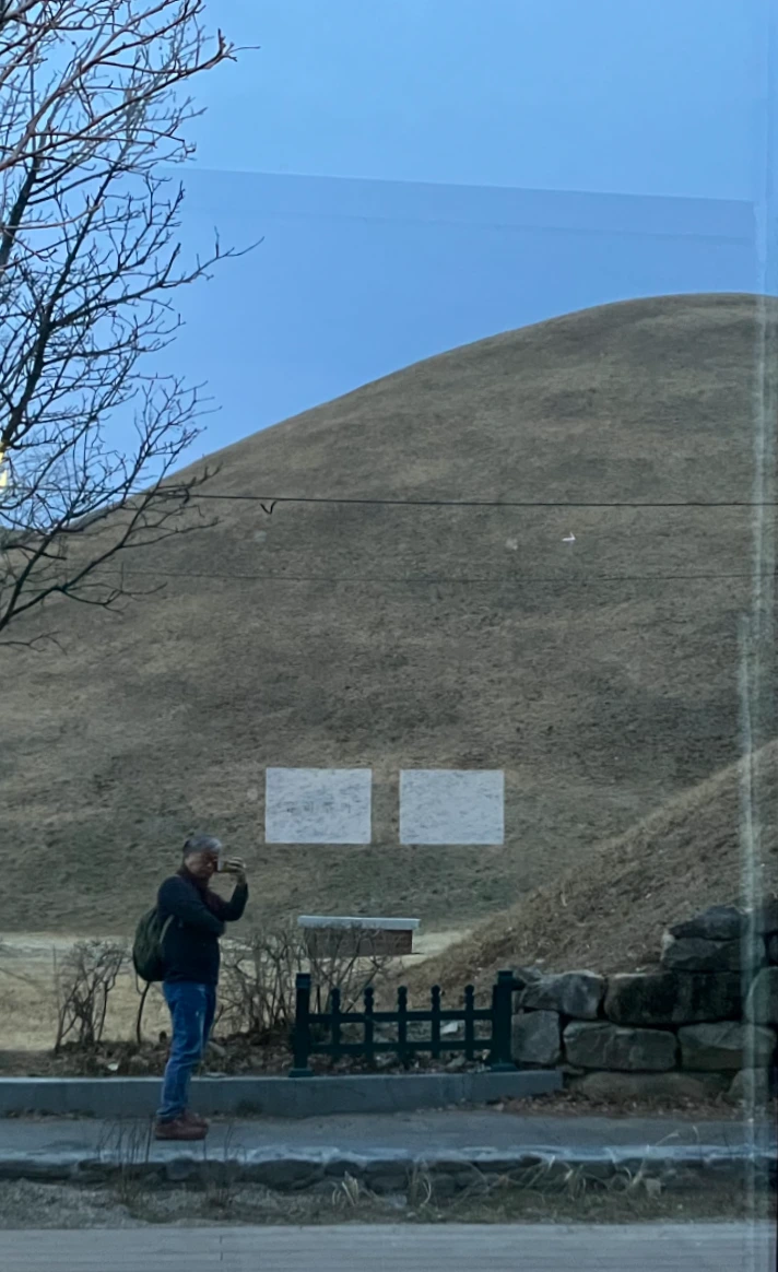 흔히 볼 수 없는 장면이다. 우리나라 지형 중, 저렇게 평지에 산들이 쑥 솟은 지형이 왜 없겠냐만, 평지가 거치적거리는 다른 인공 구조물 없이 저렇게 뚫려있는 곳은 드물 것이다. 넓은 평야 위, 산이 솟아 병풍을 펼치고 강이 흘러 땅을 적신다. 소설가 Y는 어디선가 비슷한 장면을 본 것 같다는 생각이 들었다. 어디지? 그래! 제주에서 오름에 올라 다른 오름들을 내려다봤던 기억이었다. 왼쪽이 경주이고 오른쪽이 제주이다. 사진을 찍었을 때가 2015년이라, 지금은 혹시 다른 풍경일까? 제주의 특성상 그렇진 않을 것 같았다.