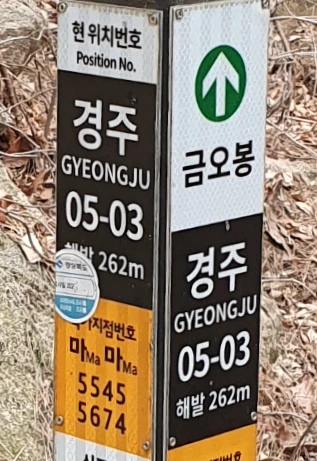 석조약사여래좌상을 지나 5-3 표지를 만나면 금오봉까지 거의 다 올라온 셈이다. 해발 262m라고 나온다. 안내 지도를 보면 선각 마애불에서 상선암까지 약 400미터이다.