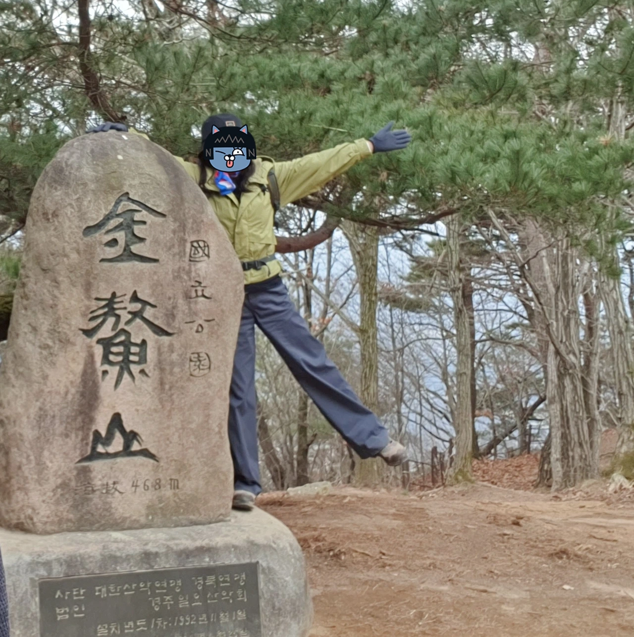이미 높은 곳까지 올랐기 때문에 마애석가여래좌상을 보고 금오봉까지 가는 길은 거리가 좀 있어 보여도 전혀 힘들지 않다. 수평이동이라고 생각하면 된다. 정상이니까 사진을 찍어야 할 것 같긴 했는데 다른 관광객들이 계속 포즈를 취하는 통에, 그냥 찍고 나중에 얼굴을 가리기로 했다.