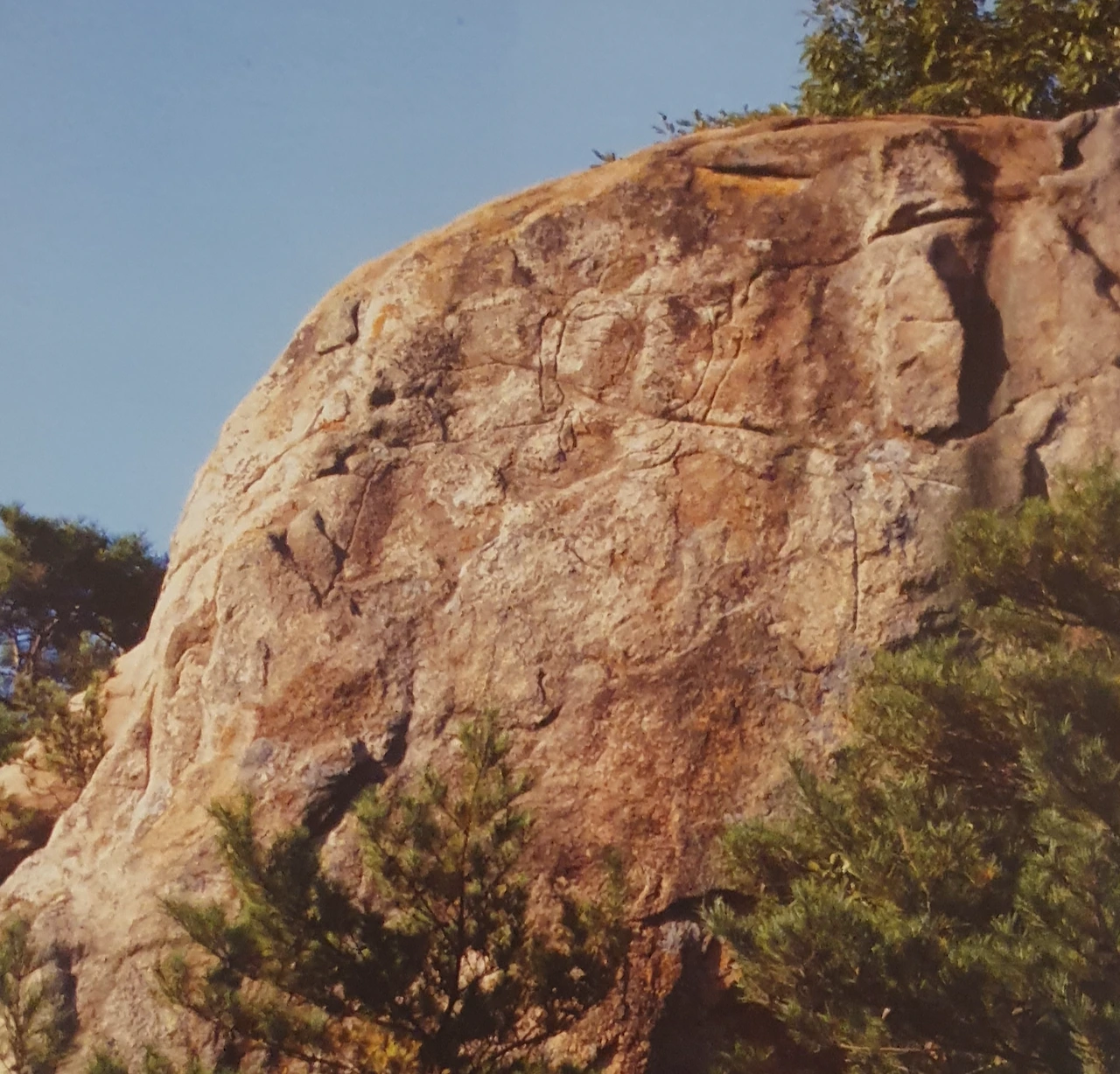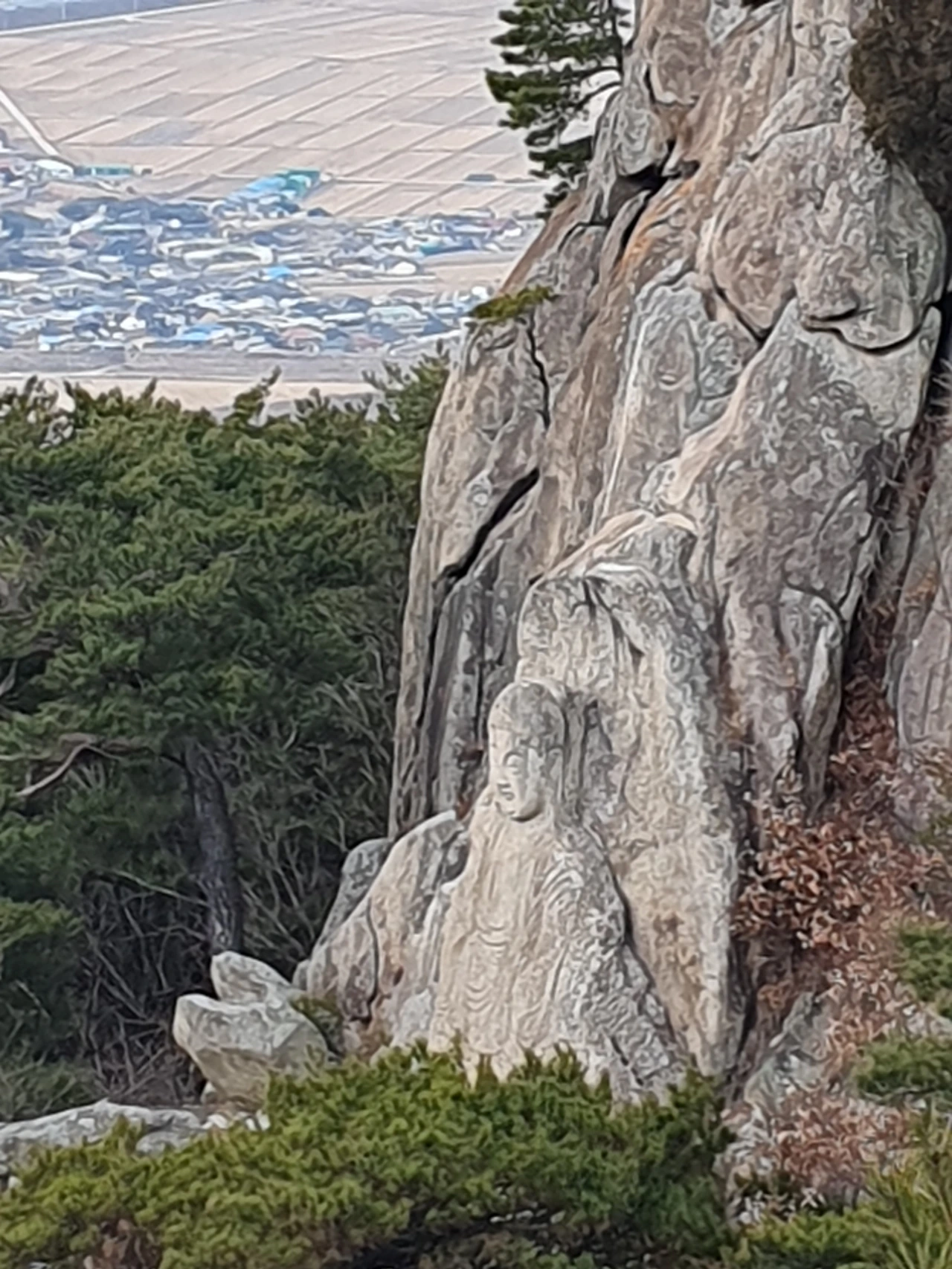 불상을 보고 개울을 건너면 선각 마애불이 있다고 지도에 나와있다. 그런데 아무리 눈을 씻고 쳐다봐도 잘 보이지 않는다. 선각이라 그럴까? 그래도 눈비를 맞으며 천년을 견뎌온 것인데.... 아래, 안내 책자에 나온 모습도 아주 뚜렷하지는 않다. Y는 바위에 새겨진 선각불상은 아마도 불심을 가진 사람이, 좋은 기회를 만나야 볼 수 있는 게 아닌가 생각했다.