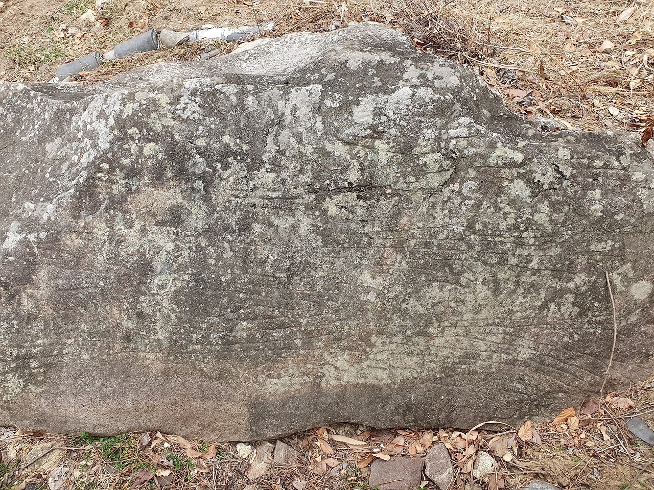 Y가 상선암 구경을 마치고 다시 정상으로 올라가려고 할 때 계단 옆에 안내판이 보였다. 뭐지? 그냥 지나치려고 하다가 읽어보니 계단 옆에 아무렇게나 놓여있는 것이 선각된 불상이었다. 선각보살입상은 원래 있었던 자리는 알기 어렵지만, 처음 만들어질 때는 키가 5~6m에 달하는 대형 불상으로 추정된다고 했다. 남아있는 건 불상의 하반신으로 추정된다. 자세히 보면 옷주름이 보인다.