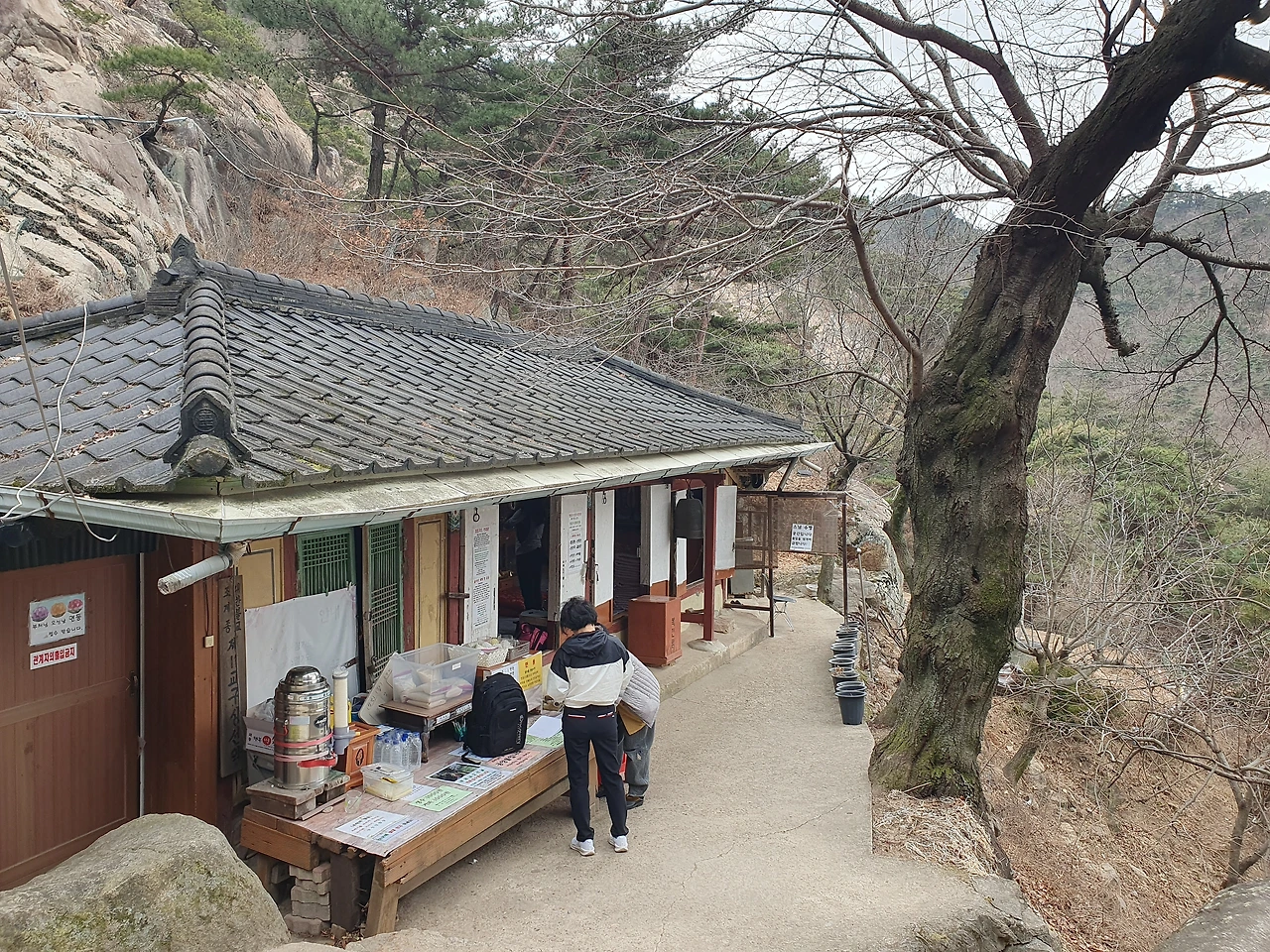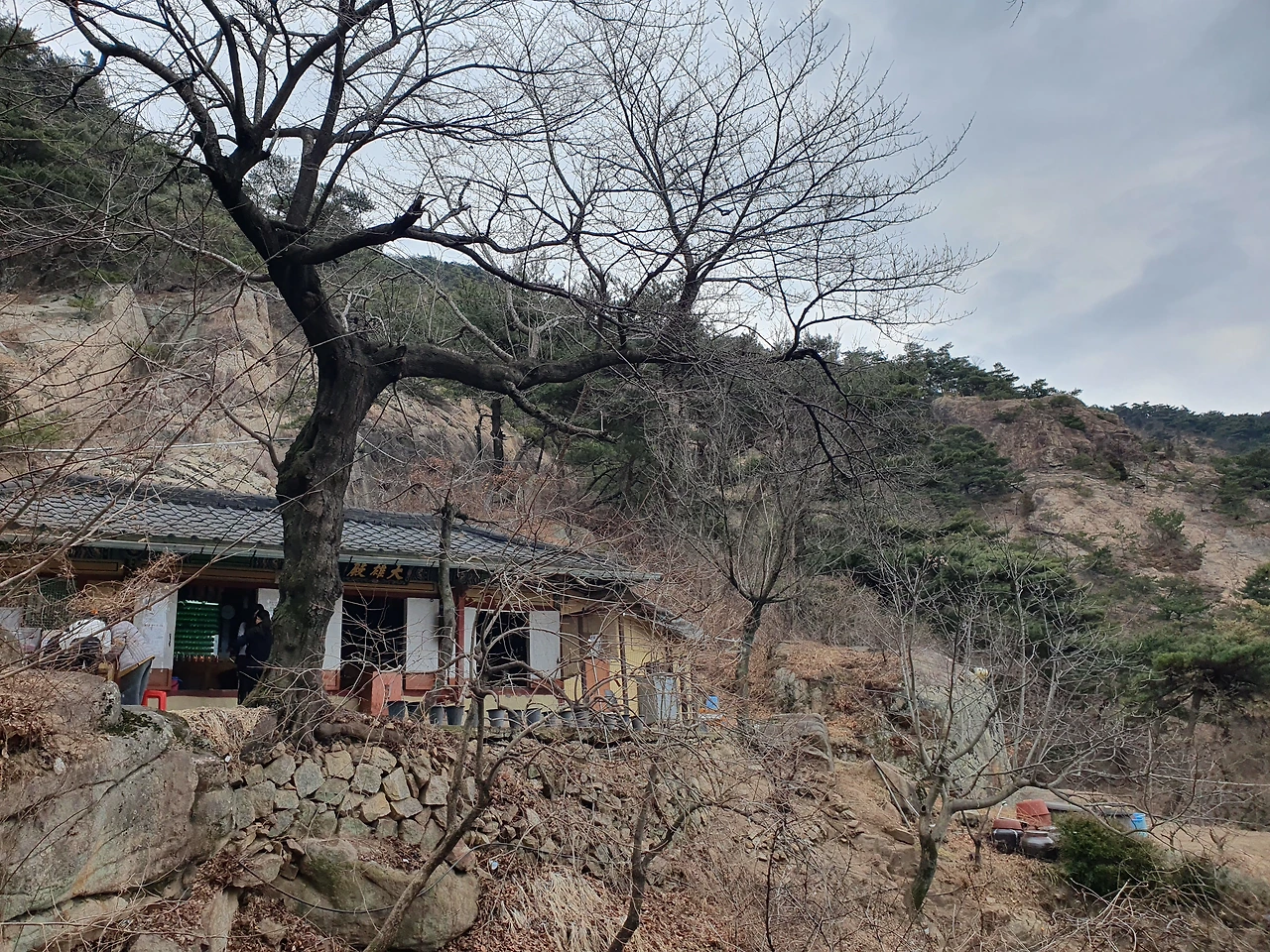 Y가 현장에서 느낀 것과 크게 다르지 않았다. 나무 한 그루가 암자 앞에 서 있다. 주변의 어떤 나무와도 비교할 수 없는 당당함이 척 보아도 느껴진다. 암자는 8부 능선에서 계곡 전체를 굽어본다. 탁 트인 절경이다. Y를 앞서가던 어머니와 딸이 있었는데 이들도 이 암자에서 만났다. 물 한 모금을 마시려고 들렸나 보다.
