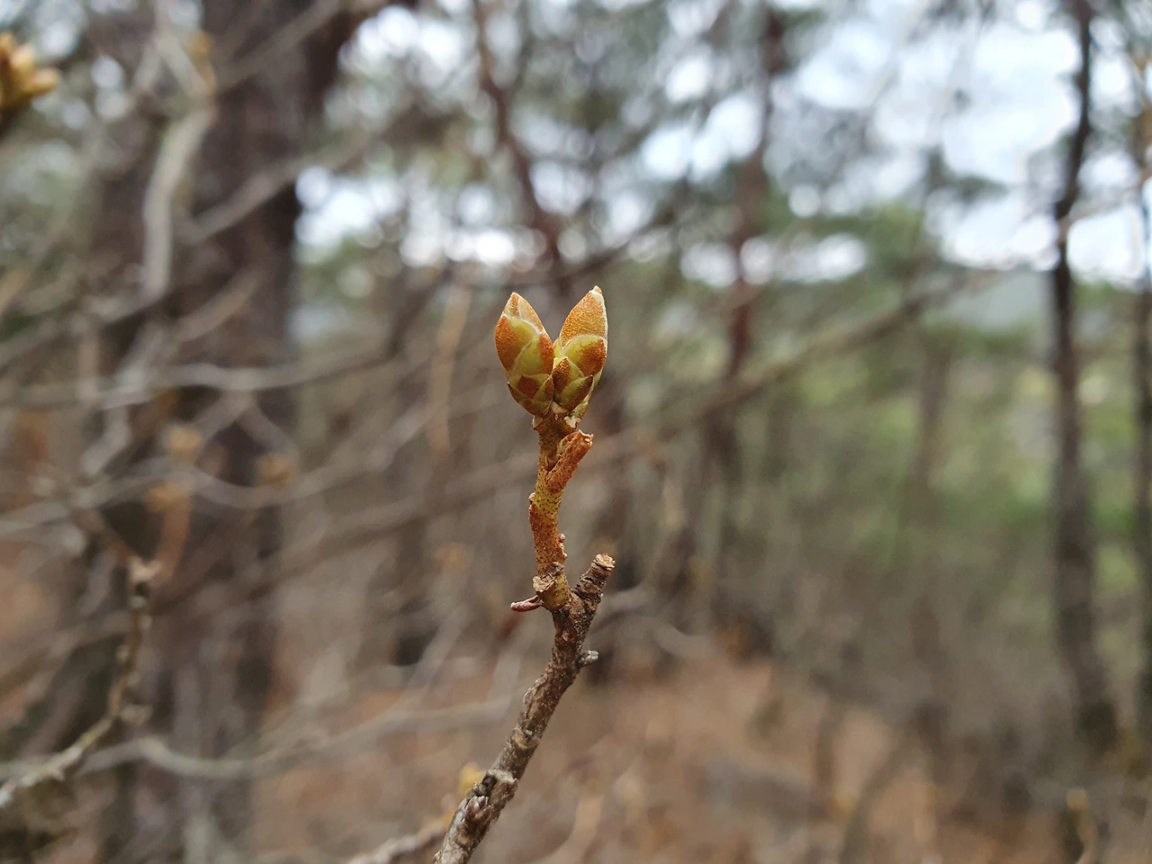 나뭇가지에서 새롭게 돋아나려는 겨울눈(동아, 冬芽). 비늘처럼 덮인 저 속에서 꽃이나 잎이 숨을 쉬고 있고 이제 따뜻한 봄 햇살의 신호가 오면 터져 나오게 될 녀석들이었다. 흑백의 사진에 물감을 떨어뜨리듯 연녹색으로 피어나게 될 봄을 생각하고 있었는데, 눈앞에 놀라운 전경이 펼쳐졌다.