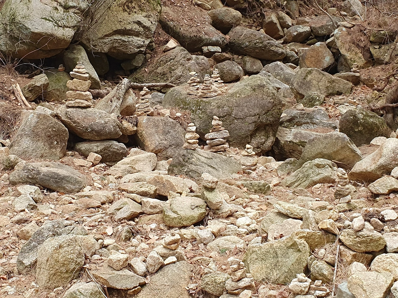 사람들이 쌓아놓은 조그만 돌들의 탑도 빼꼼히 서 있었다. 봄이 되고 여름이 되어 물이 흐르면 저 앙증맞은 돌탑들이 무너지는 건 아닐까, Y는 쓸데없는 걱정을 하면서 사진을 찍었다.