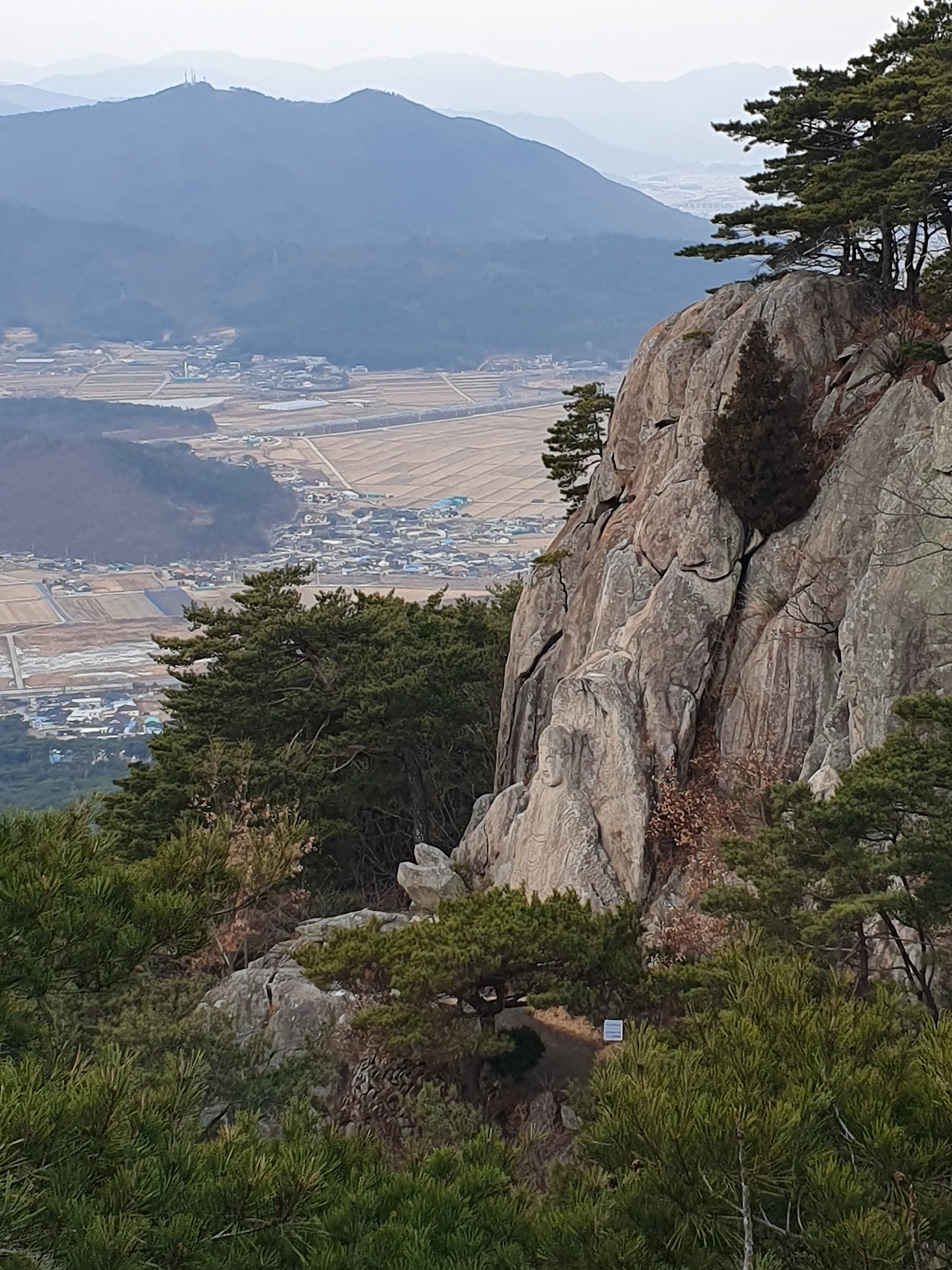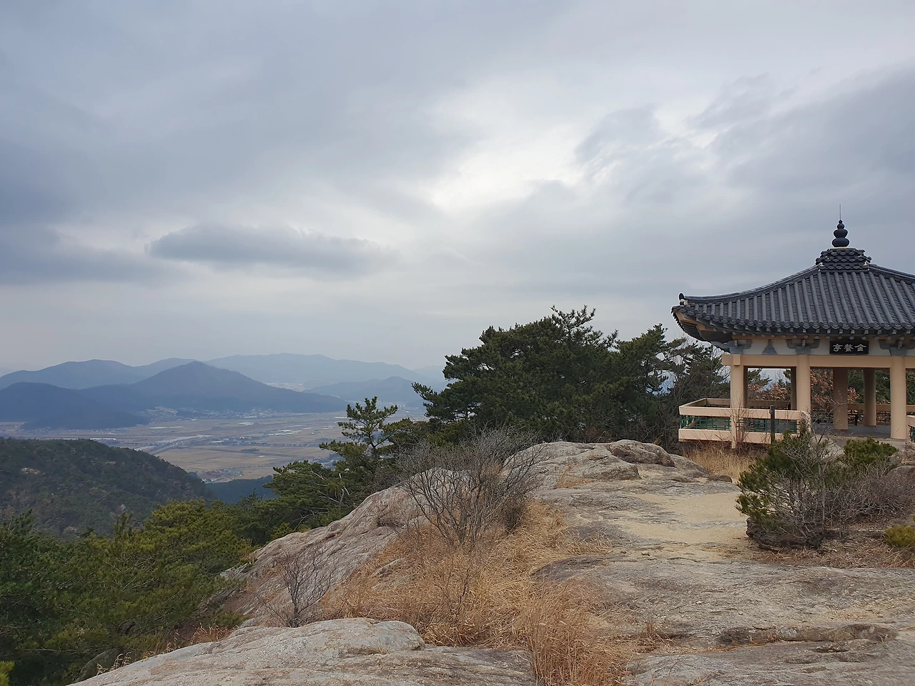 금오정에서는 가까이에 까치봉, 멀리로는 토함산이 보인다. 아까 바둑바위에서 봤던 것과는 다른 전망이다.