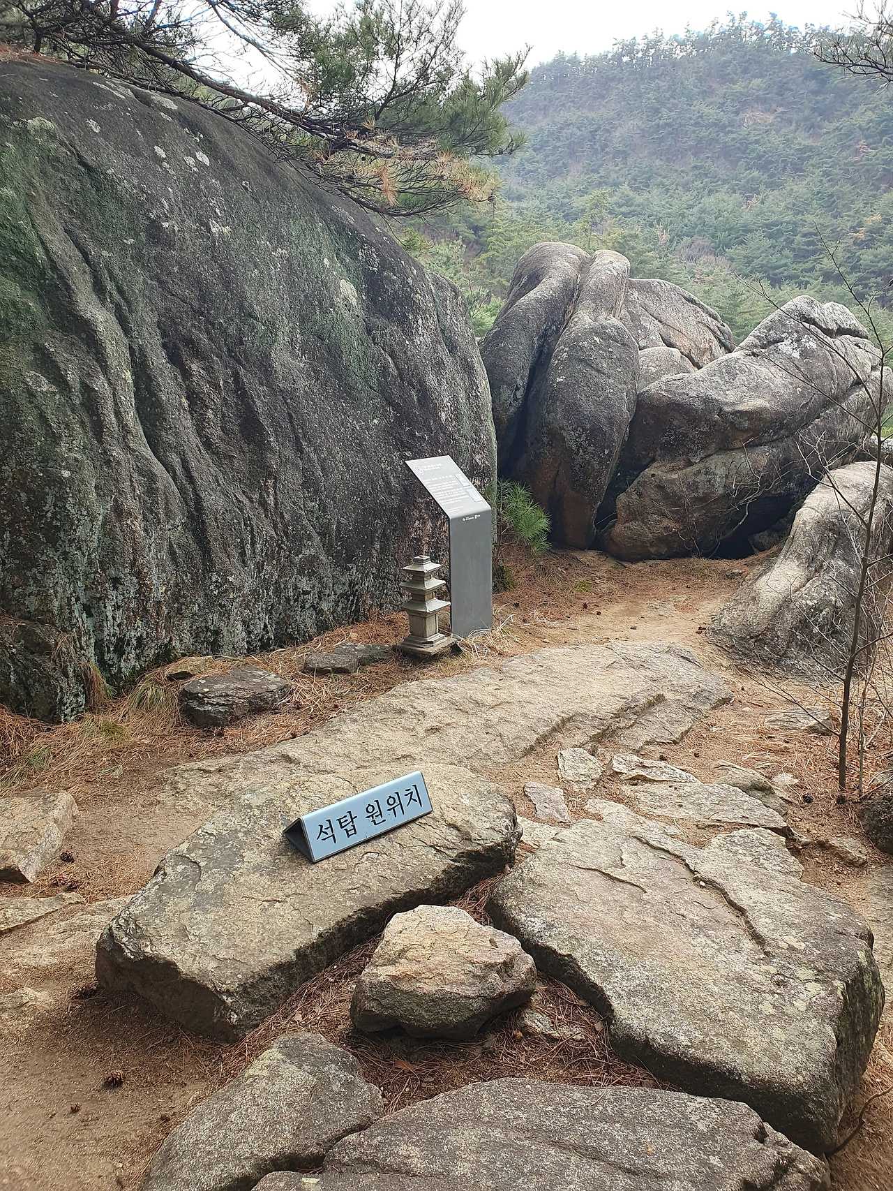 좀 더 올라가다 보면 큰 표지판이 있다. 이제 탑을 보는 건가 심쿵했는데 내용을 보니 진짜 '삼층 석탑이 있다'는 게 아니고, 있었는데 다른 곳으로 옮겼다는 내용이다.