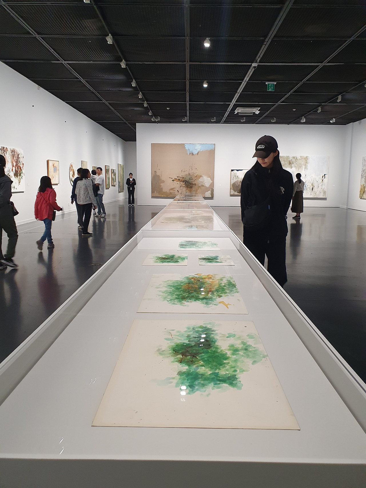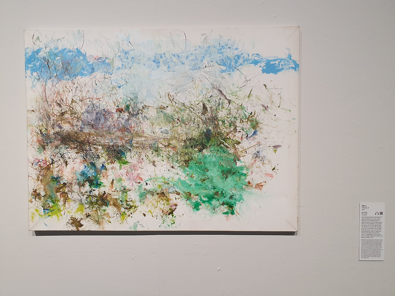 그녀의 작품들은 캔버스에 유화 물감으로 작업한 것이 대부분이었다. 그러나 그림에 다가갔을 때, Y에게 전해진 것은 유화 특유의 테레빈유(terpentine)의 느낌이 아니었다. 오히려 수묵화의 묵향에 가까운 느낌이었다.