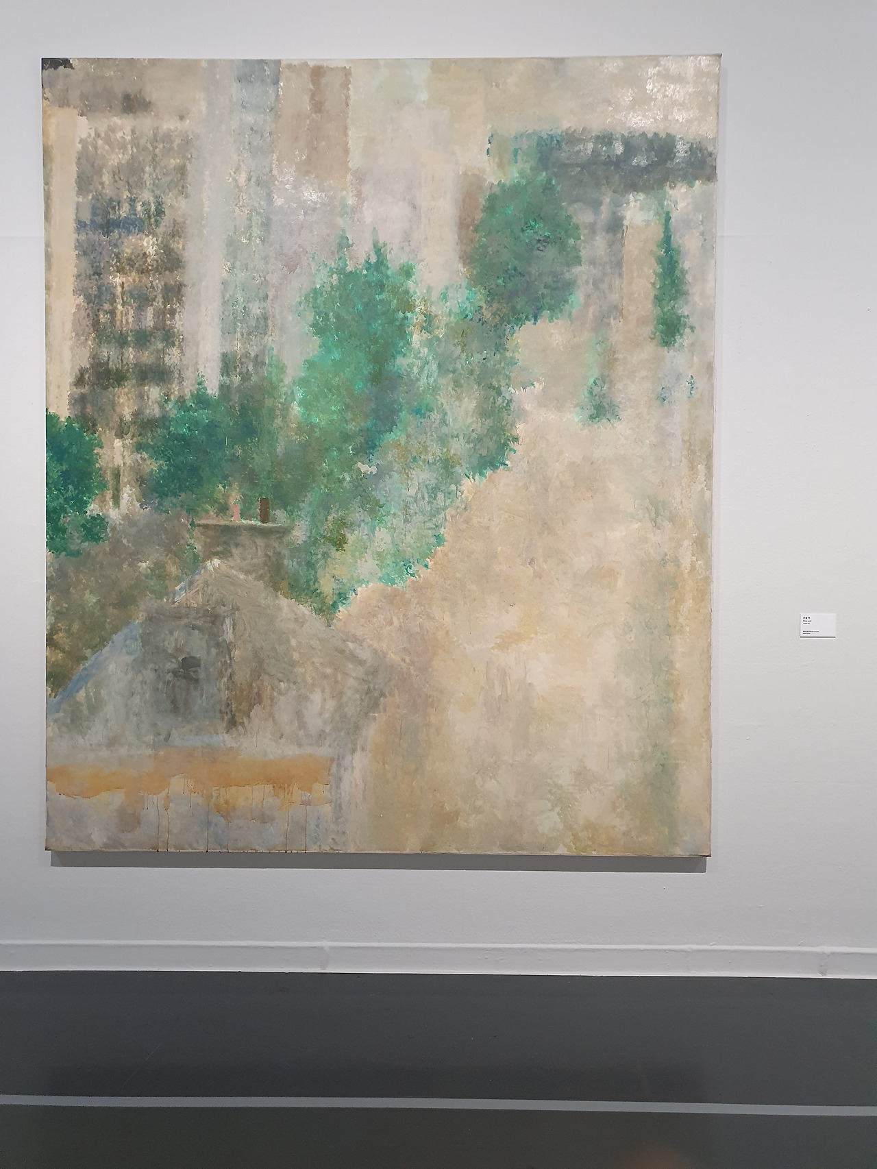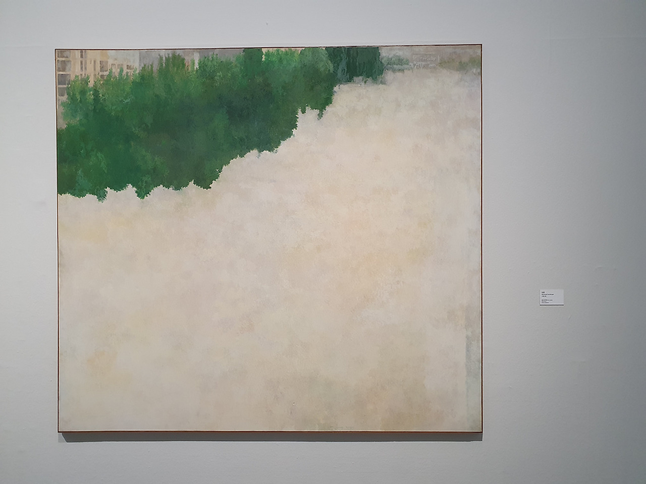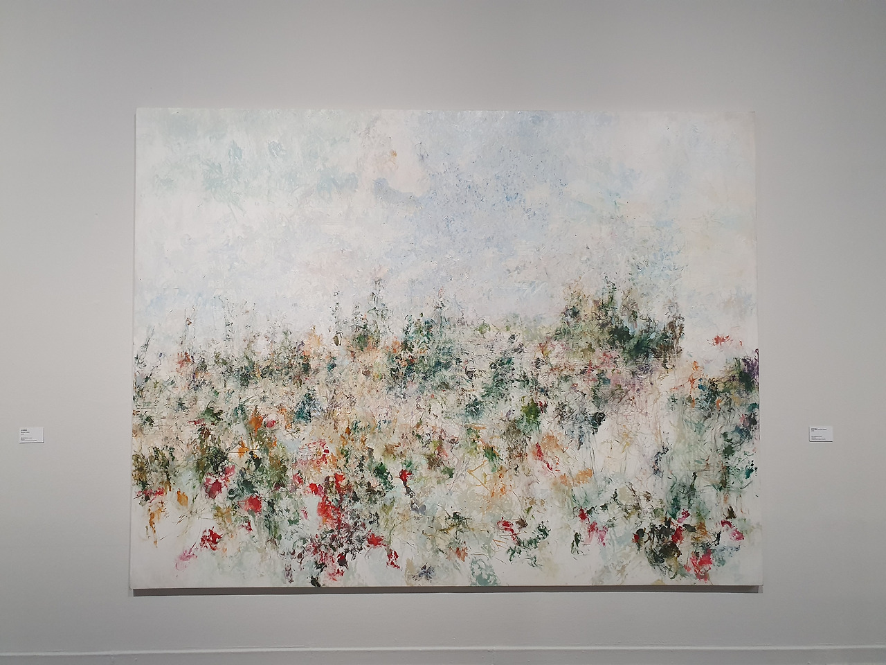 그림들은 전체적으로 꽉 채워졌다는 느낌보다는 공간과 여백에 일정한 역할을 부여하고 있었다. 그러나 화가의 붓질이 그렇다는 이야기는 아니다. 다가서서 보면 커다란 캔버스가 매우 꼼꼼한 붓질로 채줘져 있음을 알 수 있다.