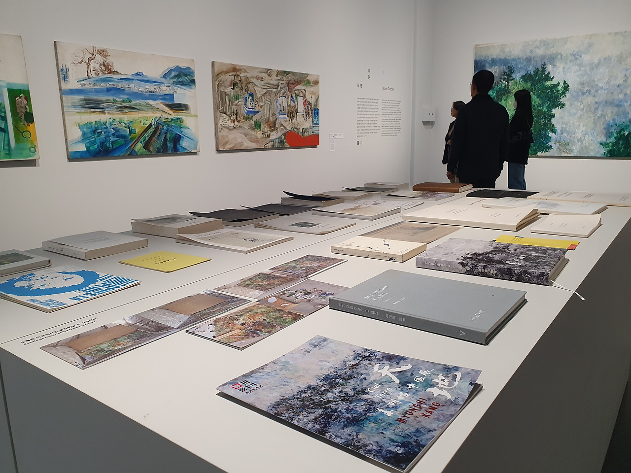 또 하나는 그림을 완성시키는 과정에 어떤 시각적인 시도를 했는지 보여줬다. 과거에 발간되었던 도록들을 진열해놓고, 친절하게도 넘겨볼 수 있도록 해놓았다.