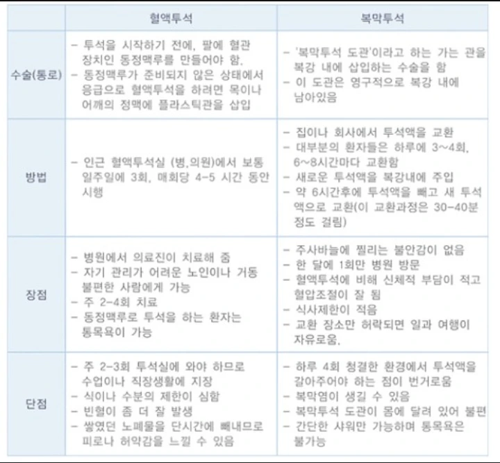 혈액투석과 복막투석. 이것에 대한 정보는 네이버에 치면 자세하게 잘 나온다