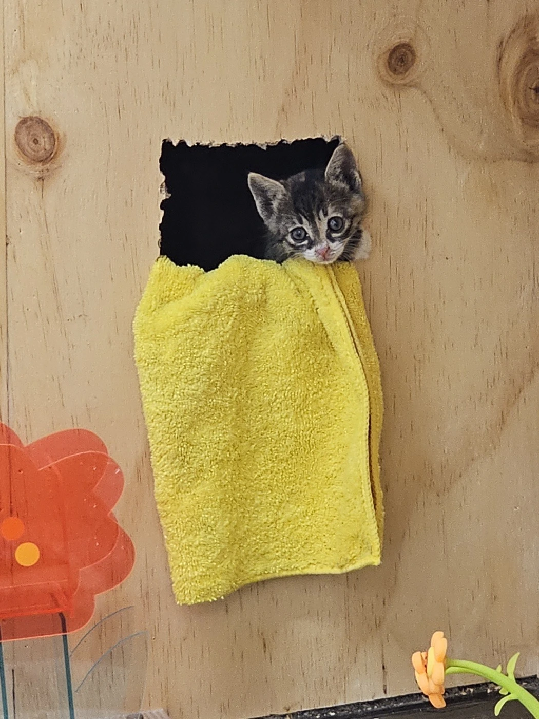 당황스러움이 잔뜩 담긴 CCTV속 내 모습은 차치하고, 내가 할 수 있는 판단은 사람의 냄새가 묻지 않도록 조심하며 혹시 어미가 찾는 공간이라 생각되는 곳으로 안내하는 것. 가게 문이 닫힌 시간이 있어 이틀 정도 굶었을 것으로 예상, 아기 고양이용 간식을 구비해 챙겨놓고 그날 저녁 확인해 보니 아기고양이가 닿지 않을 곳에 올려둔 간식 팩에 있는 이빨자국과, 없어진 물의 흔적으로 어미와 함께 있는 걸 확인했다.