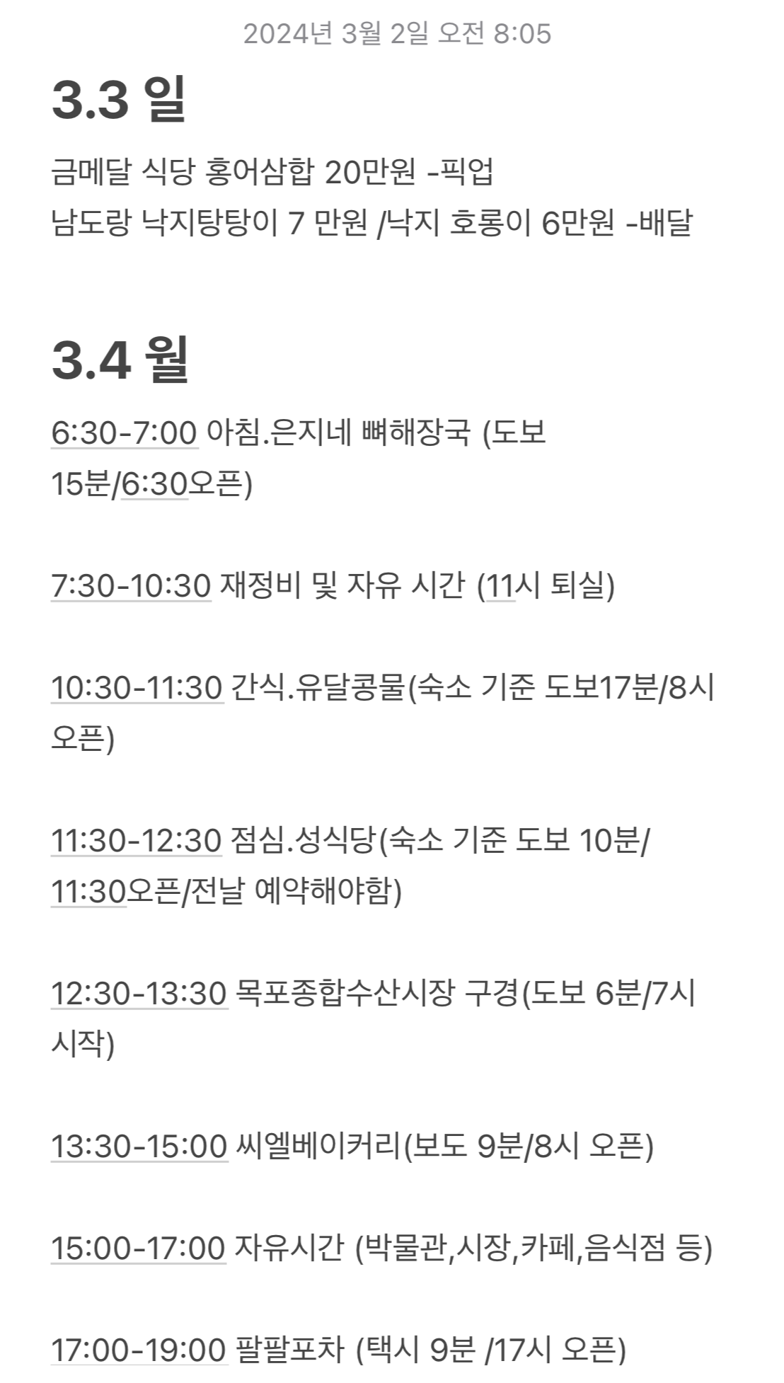 노션으로 공유된 음식점들과, 예약금 입금 요청, 숙소 예약 등 어??? 어??? 어??? 하다 일요일.