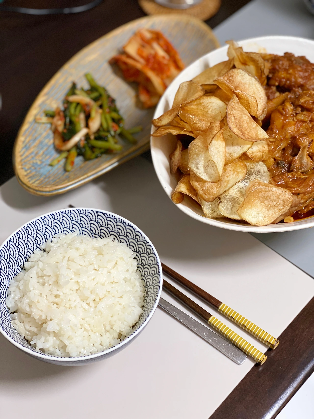 그 사이 룰루랄라 주변 정리하고 감자칩 튀겼다.(왜 예쁜 색이 안 나왔는지 이해했나?)