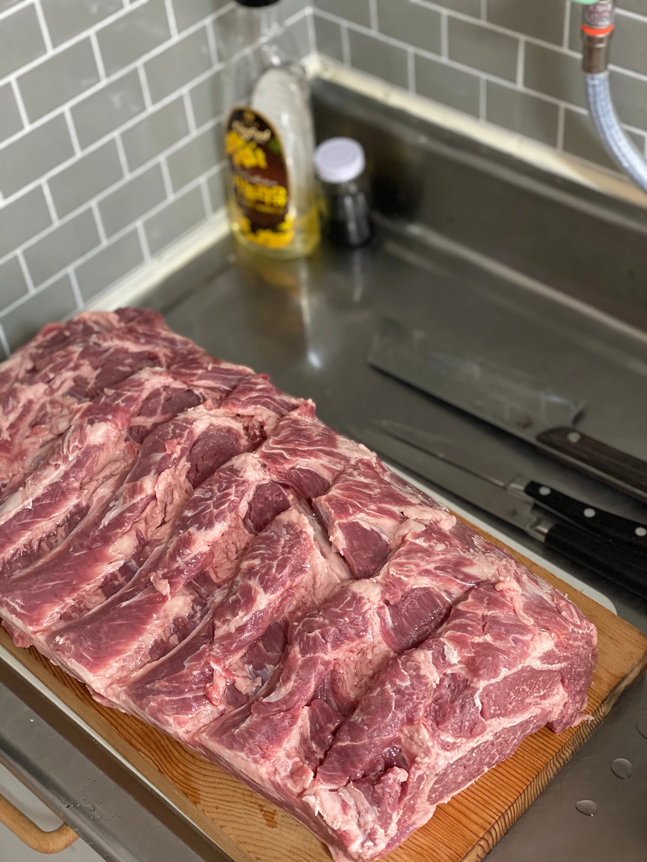 코스트코에는 여러 종류의 고기가 있지만 그중에 등심을 구매했다. 새우살도 잘 붙어있고 뼈마디의 구간이 가장 많고 핏물이 적은 아이로 모셔왔다.