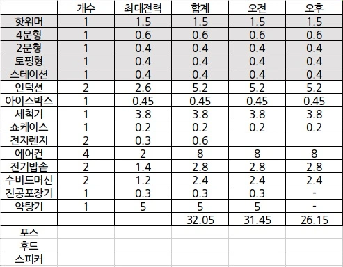 하늘이 노래지는 게 이런 거구나 싶었다. 가뜩이나 공사비용이 충분치 않아 몇십만 원 추가되네 마네에도 가슴이 턱턱 막히는데, 수백만 원에 달하는 공사비용이 추가된다는 말이기도 했다. 전기반장님의 전기 공급량 확인 후, 혹여 누전이 있거나 다른 변수는 아닐까 싶어 고객번호를 확인하고 한국 전력에 전화를 걸어 다시금 확인했다. 여러 루트로 확인해도 15Kw. 35를 세 번이나 15로 들을 수가 있나 싶어 스스로를 자책하며 공사비용을 어디서 마련할지 전전긍긍하기도 했다. 전력사용량을 다시금 체크하기 위해 집기 별 전기 사용량을 재확인했지만 나로선 30은 필요한 상황이다.