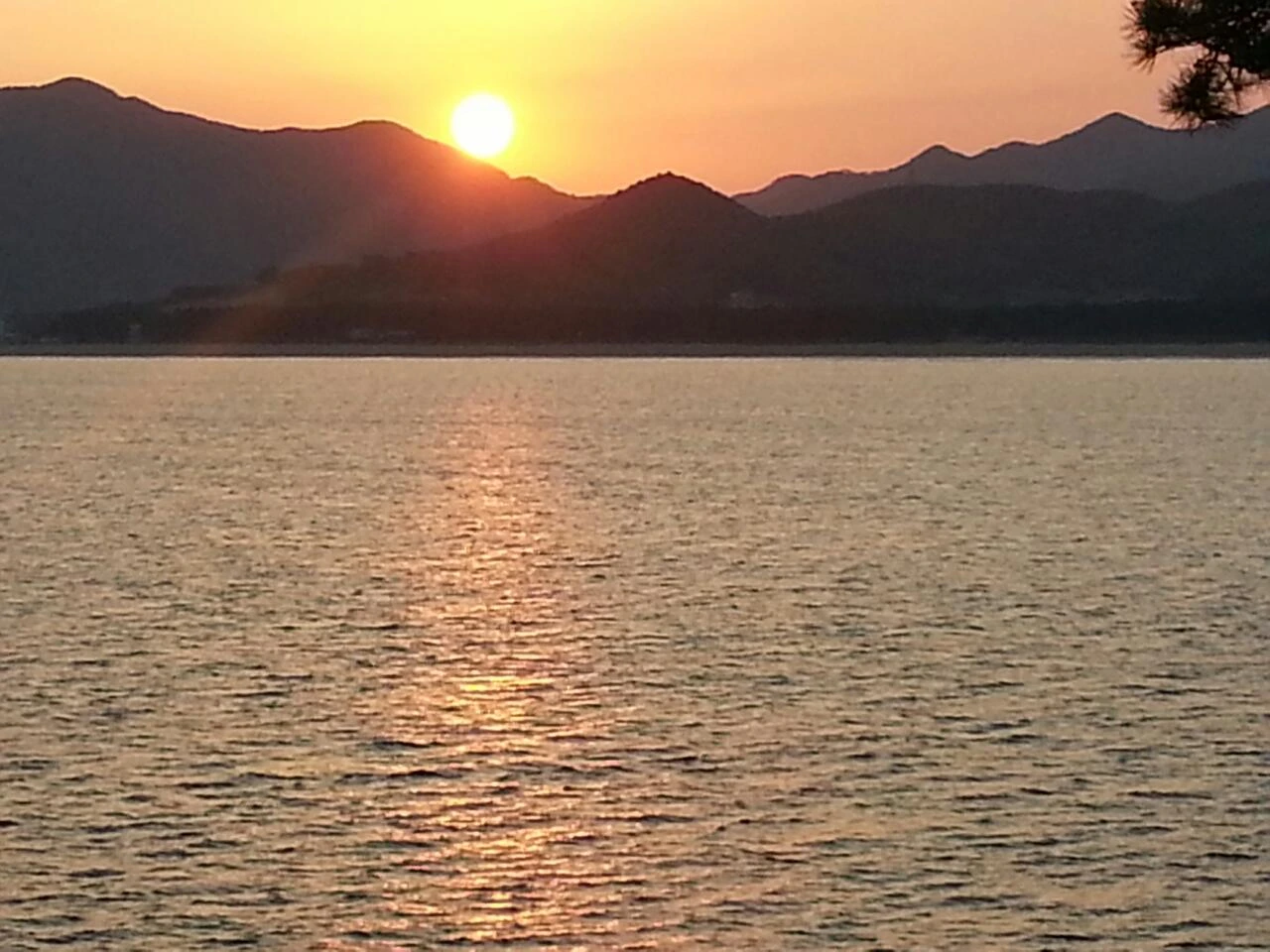 붉게 물들은 둥근 태양과