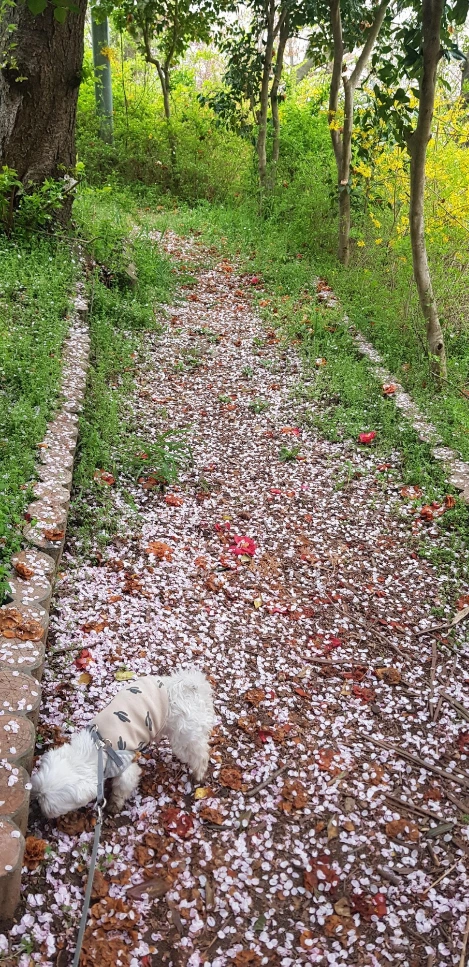 도시락을 싼 게 아까워서 편의점에서 우산을 하나 샀다. 얼마 걷지 않아서 역시 오길 잘했다 싶었다. 꽃비가 내리는 걸 보는 순간 마음이 말랑말랑해져 버렸다. 꽃과 비가 섞인 진짜 꽃비. 벤치는 나뭇가지가 비를 막아줘서 다행히 젖어 있지 않았다. 가만히 앉아있으려니까 새소리가 정말 많이 들렸고 마치 자기가 주인이라고 나한테 나가라고 하는 것 같았다. 벚꽃이 내려앉은 의자에 도시락을 펼치고 새소리를 녹음했다. 그리고 천천히 밥을 먹었다. 뭐라 말할 수 없는 행복한 기분이었고 잔잔하게 채워지는 기쁨을 느꼈다.