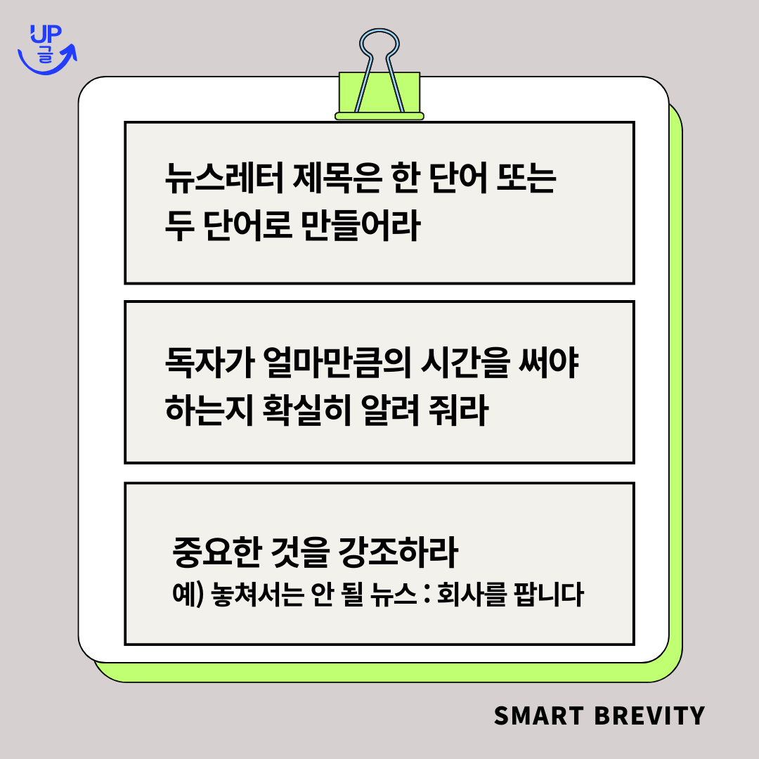 뉴스레터로 유명한 회사라 작성팁이 눈길을 끌어서 가져와 보았다.