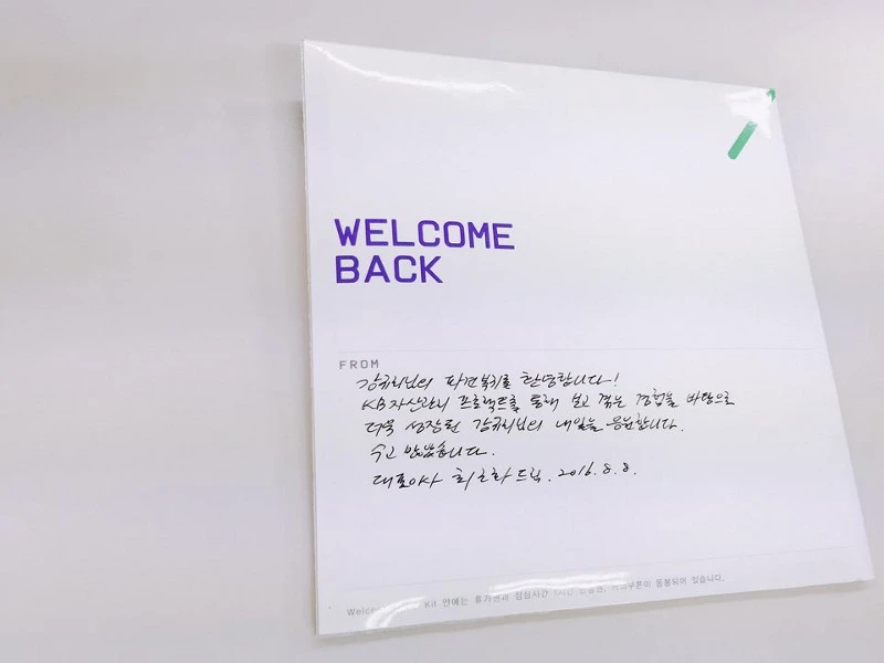 규리님께 첫 번째 Welcome Back Kit을 전달하고 2일 후 그에 대한 코멘트를 들어 보았고, 그 내용은 아래와 같았습니다.