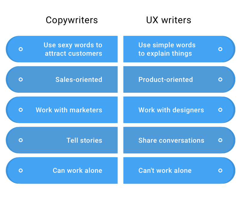 아래 이미지는 Copy writer와 UX Writer의 차이를 명확하게 설명해준다.