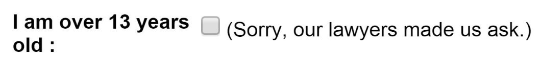 - (상) : '당신의 데이터를 절대 공유하지 않습니다. 생일 정보는 어린이 온라인 개인정보보호 법령(COPPA)에서 요구합니다.'