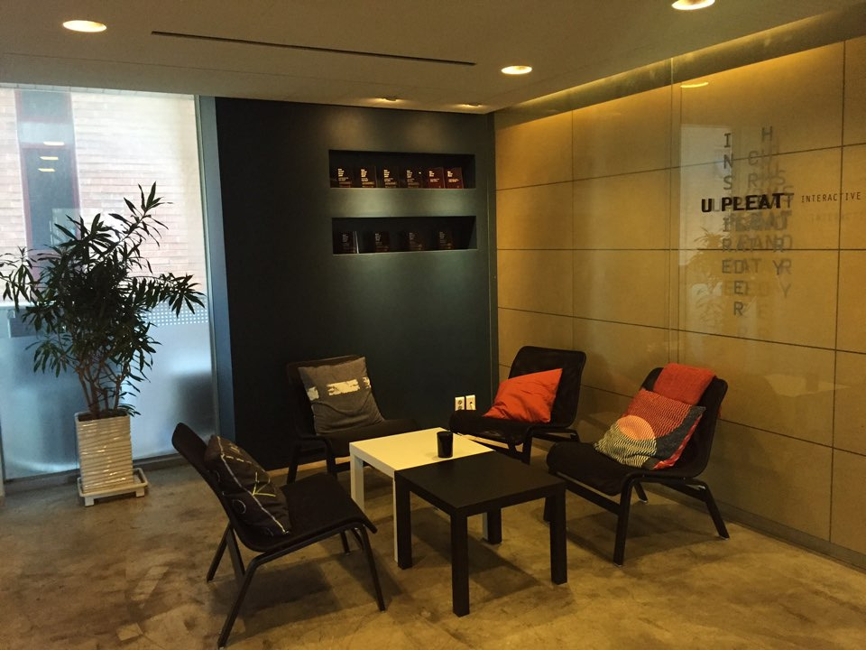 두 번째 변화!휑하니 비오는 날 우산을 말리던 회사 입구는 언제든 유플리터가 휴식을 취할 수 있도록 엄청난 변신을 했습니다. 이제 편안하게 앉아서 담소를 나눠 보세요~! (물심양면으로 애써주신 은실 팀장님 감사합니다~!)