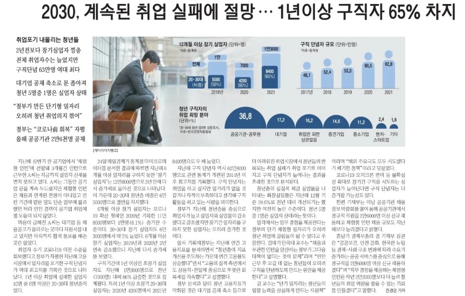 현재 2030을 대표하는 MZ세대는 기성세대와 달리 상대적으로 치열한 경쟁 사회에서 살아남기 위해 더 많은 시간과 노력을 갈아 넣고 있다. 학벌과 자격증, 어학성적, 어학연수, 인턴 경험 등 입사에 필요한 스펙을 쌓는 것은 너무나도 당연한 옵션이 되어버린 지 오래다. 예전처럼 대학 졸업장이 밥을 먹여주는 시대는 사실상 끝났다. 요즘은 인 서울권의 괜찮은 대학을 나와도 자신의 경쟁력을 입증하지 못한다면 괜찮은 기업에 취업하기 힘들기 때문이다.