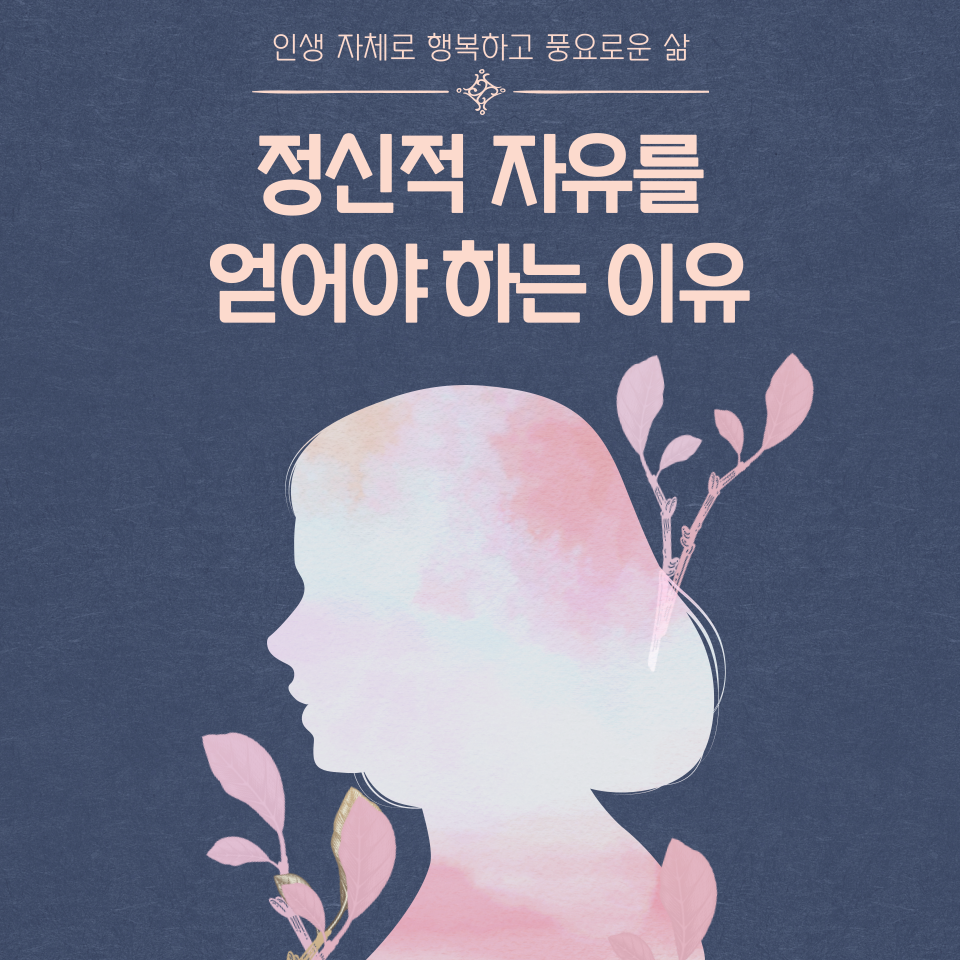 아마 '경제적 자유'란 말은 들어봤어도, '정신적 자유'라는 말이 좀처럼 생소하고 크게 와닿지 않는 사람이 많을 것이다. 정신적 자유란 때와 장소, 상황과 관계없이 언제 어디서나 흔들림 없는 내면의 평화와 행복을 느끼는 것이다.