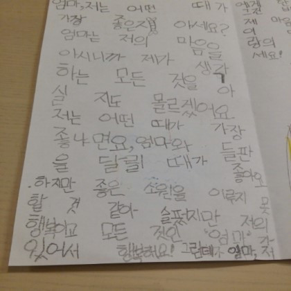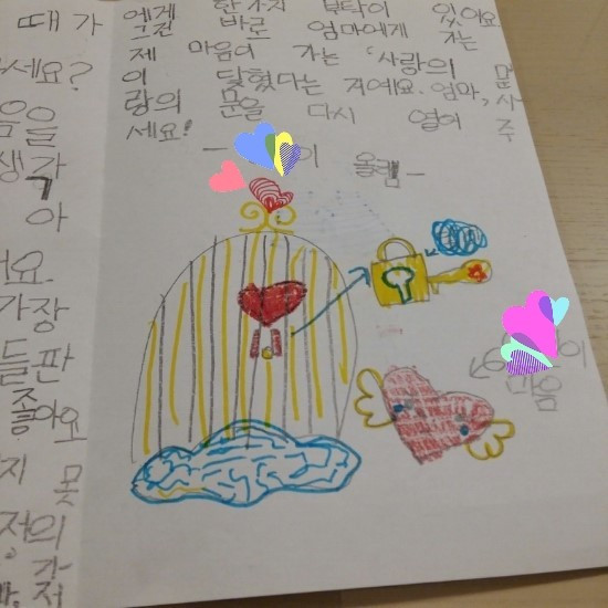 엄마에게 하트를 그려온 것 보니, 아이는 이제 이야기할 마음의 준비가 된 듯했다.