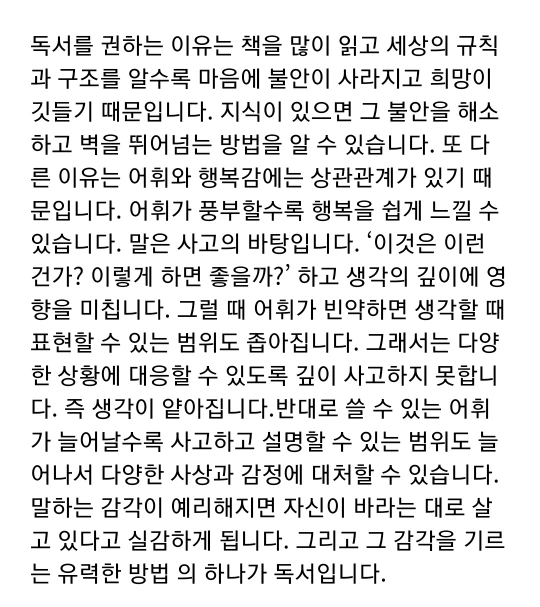 나아가 독서를 해야 하는 이유에 대해서도 쉬우면서도 묵직하게 전달한 부분이 중요하게 와 닿았어요.
