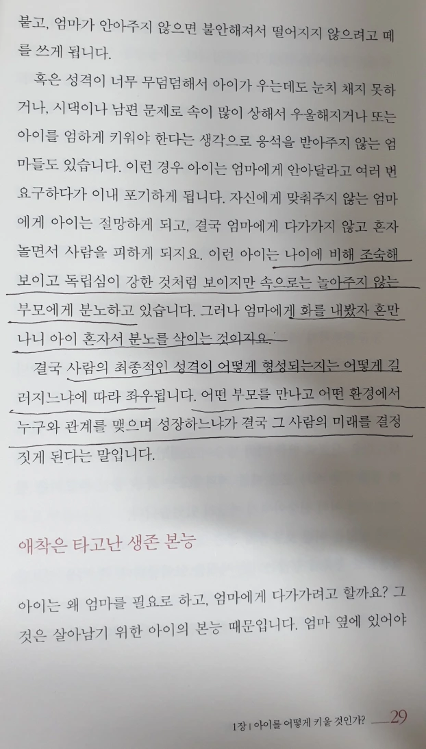저의 미션은 나의 아이들과 애착 형성하는 것을 게을리하지 않겠다!입니다 오랜만에 육아서를 꺼내 들었는데요 감회가 새롭네요 첫 아이 육아는 그야말로 "책으로 키웠어요"의 전형이었는데요 어린 나이에 갑작스럽게 아이를 만나게 되어 전혀 준비되지 못한 상태였고.. 시댁 친정 도움을 전혀 받을 수 있는 상황이 아니었어요.