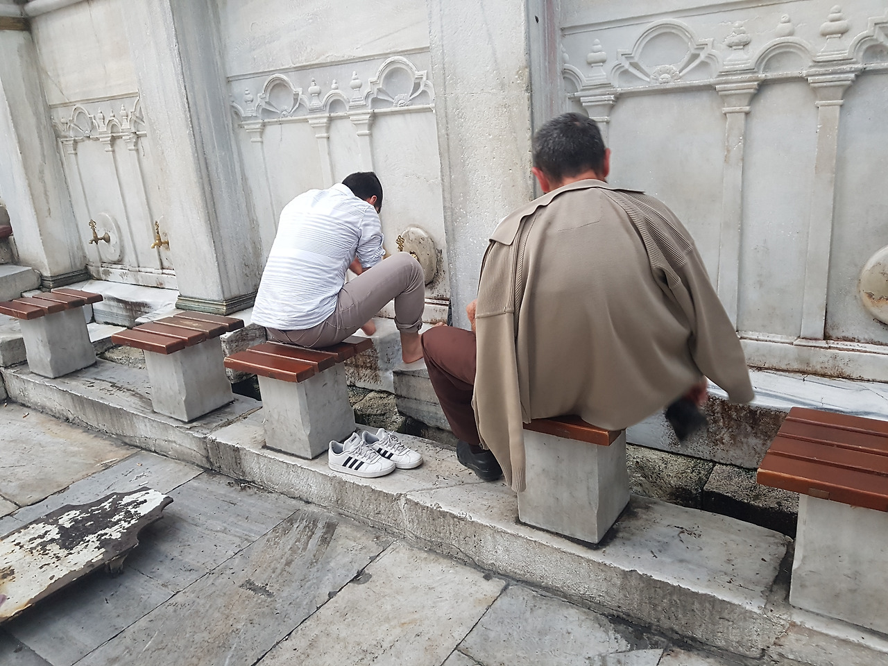 사원 앞에는 이슬람교 신자들이 손과 발, 귀, 얼굴 등 (죄를) 씻고 들어가는 것이라 한다. 그래서 씻을 수 있는 곳이 사원 앞에 마련되어 있었다.