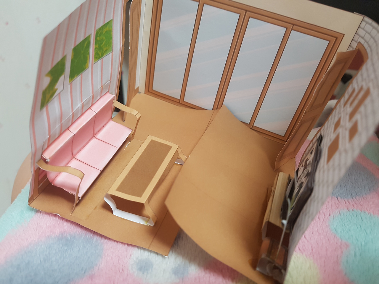 무려 3시간이나 투자해서 하나하나 그리고 오리고 붙이고 정성 들여 만든 입체 인형의 집.