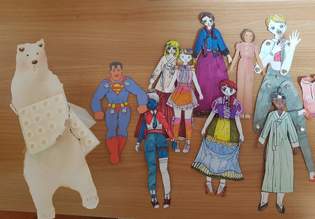 인쇄해서 인형 옷 디자인해서 색칠하고 입체 인형의 집을 꾸미기에 요즘 푹 빠진 첫째아이의 결과물.