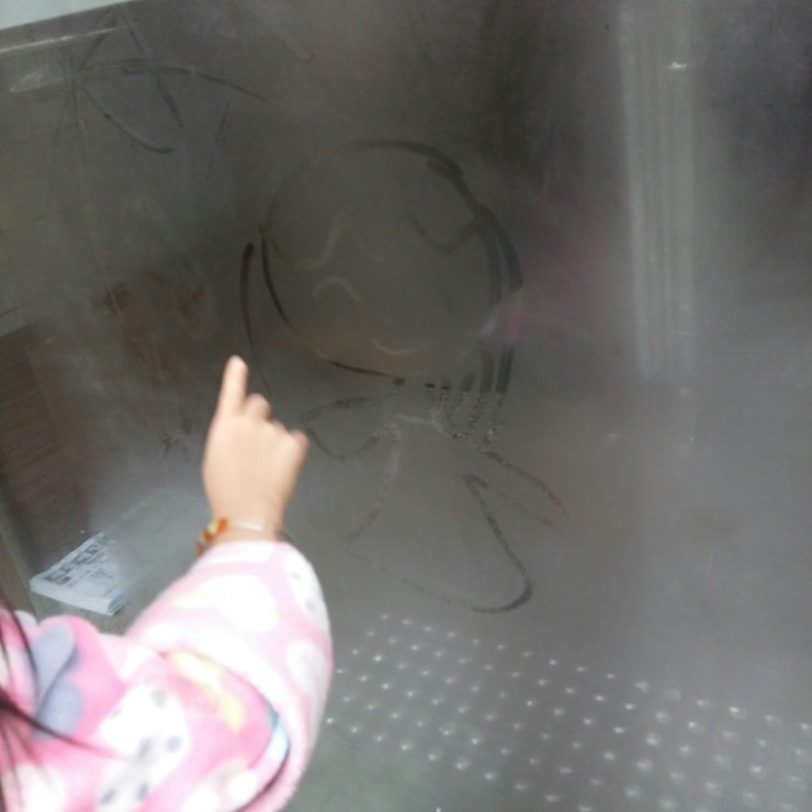 일하시는 이모님 힘드시니 현관에는 그림 그리지 말고 집에 가서 그리자고 했더니, 그 뒤로 다시는 공동현관을 탐내지 않던 아이.