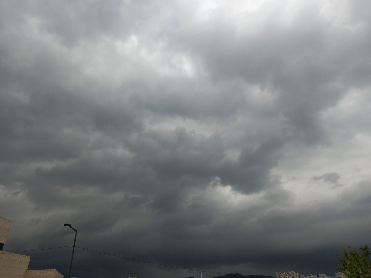 오늘 처리해야 할 일들이 있어서 밖에 나갔다 왔는데, 일을 끝내고 집에 가려니 하늘이 이랬다.
