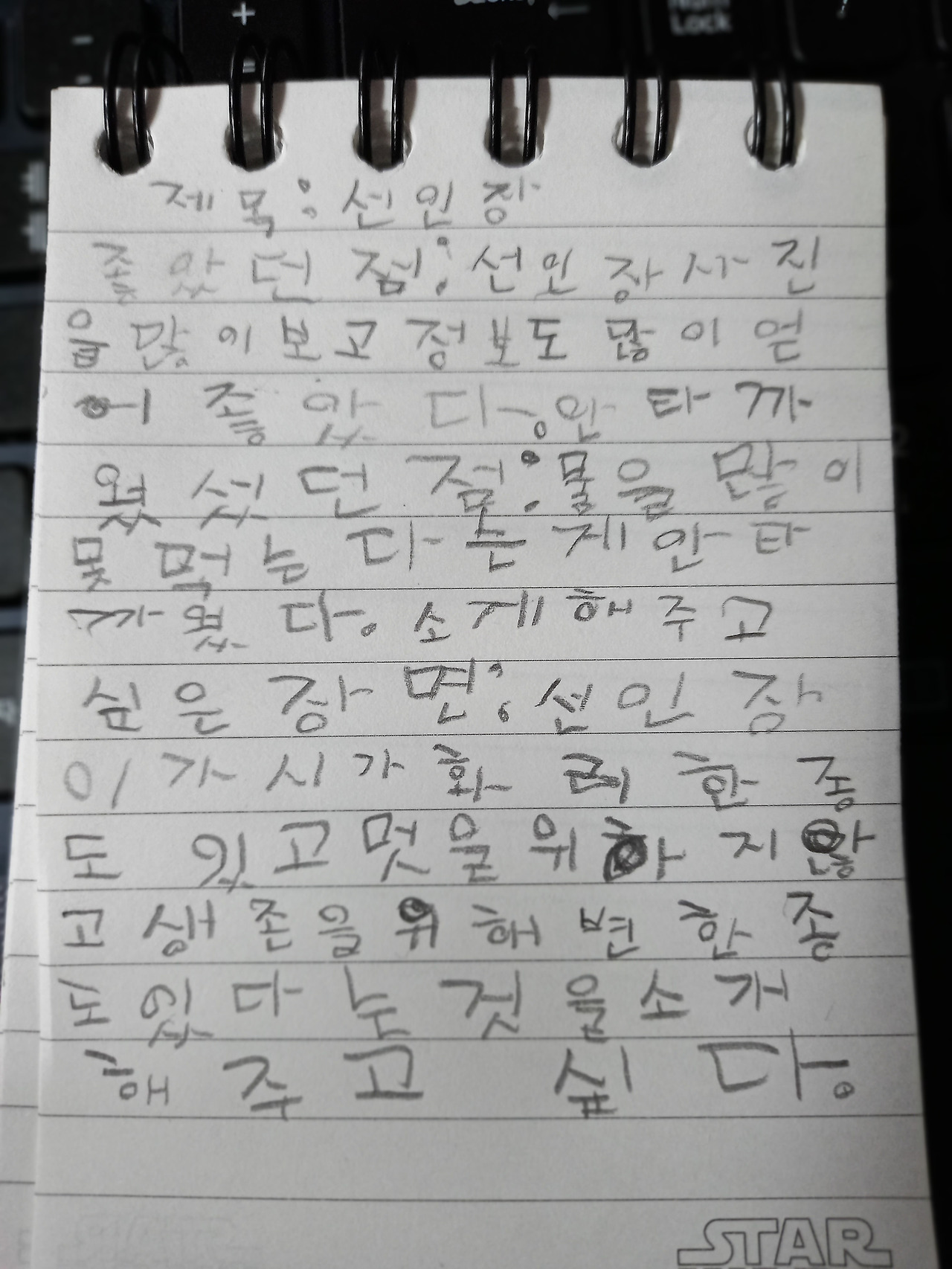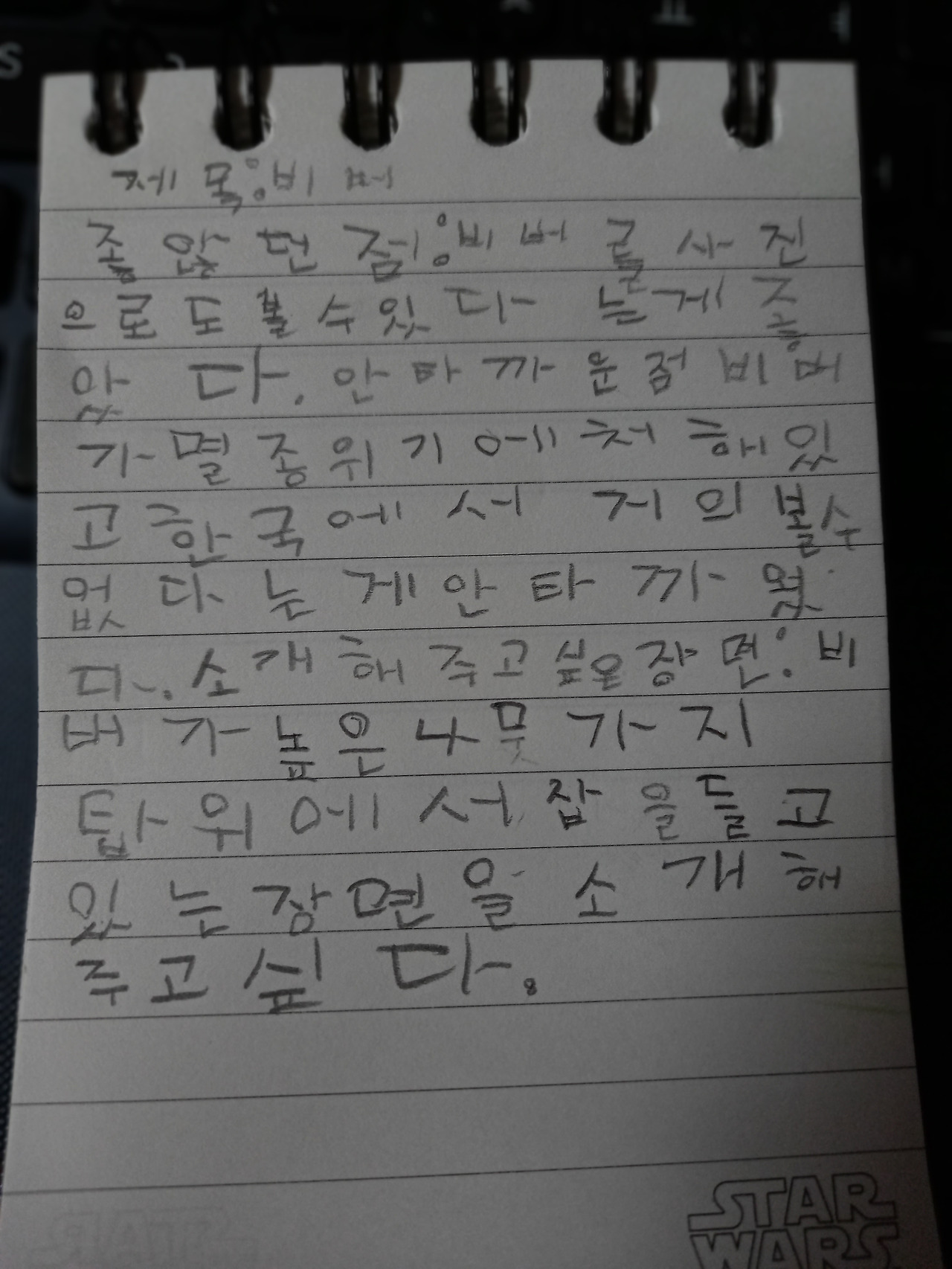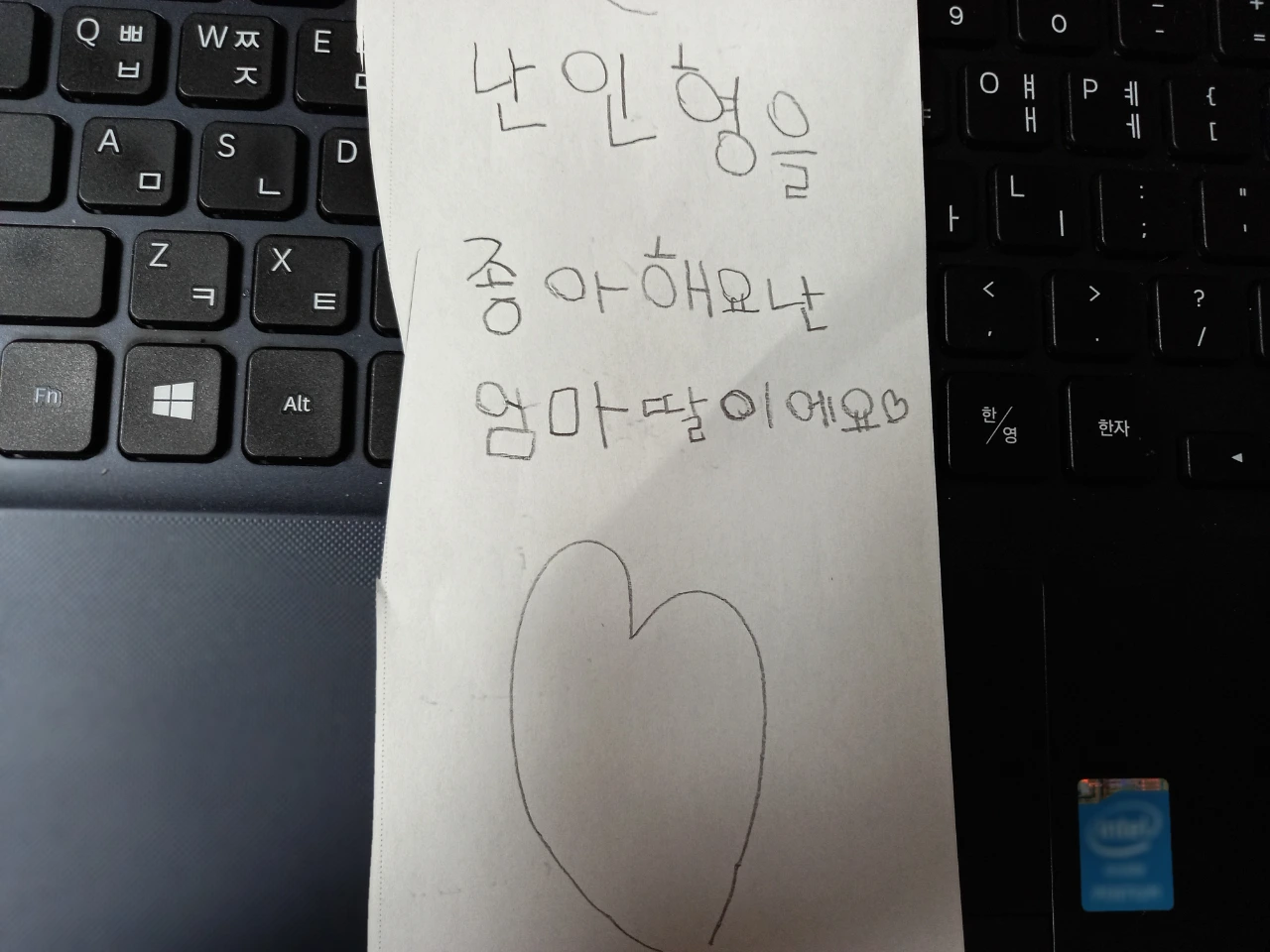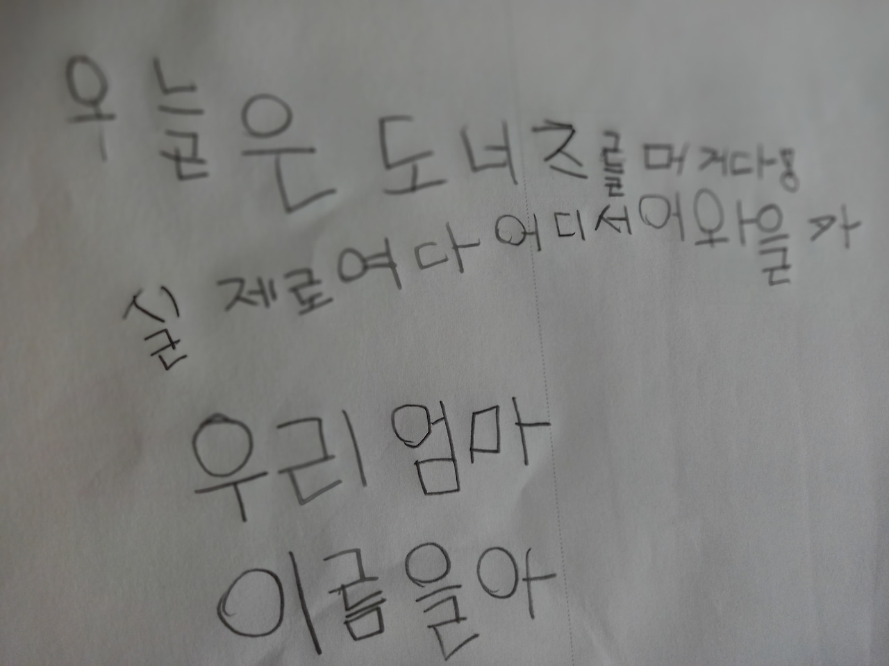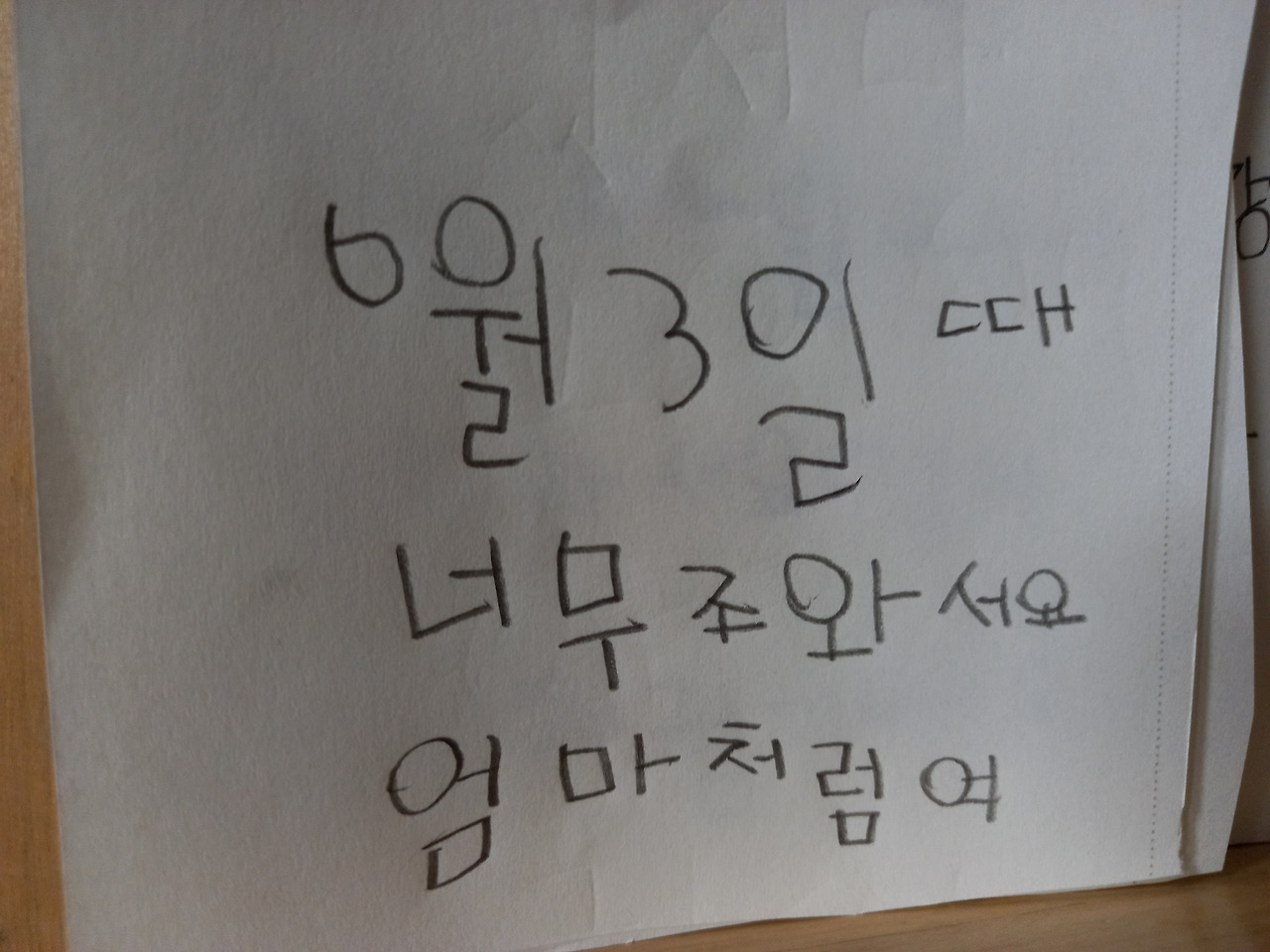 오빠가 글을 쓰니, 일곱 살 막내도 옆에서 글을 적었다. 무엇을 쓰면 좋겠냐고 하기에 쓰고 싶은 것을 적어보라고 했더니 이렇게 적어왔다.