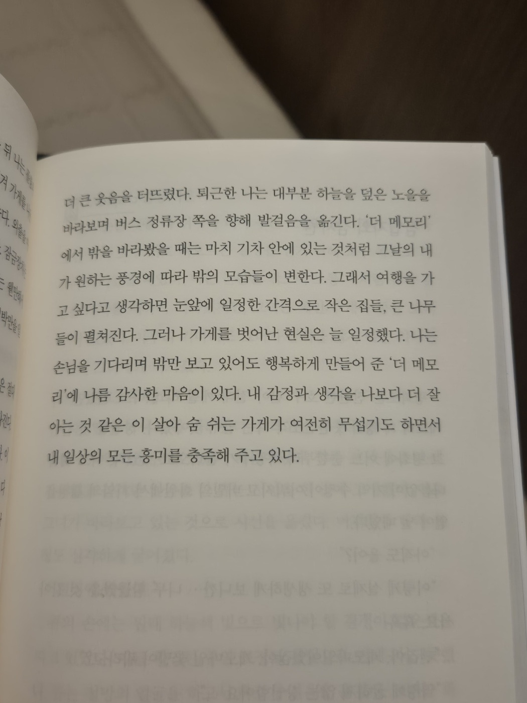 이불속에 파묻혀 남편에게 조심히 출근하라며 인사를 하고, 아이가 깨지 않게 조용히 거실로 나왔다. 며칠 전 도서관에서 빌려온 책을 읽을 참이다. '더 메모리'_금필춘 소설