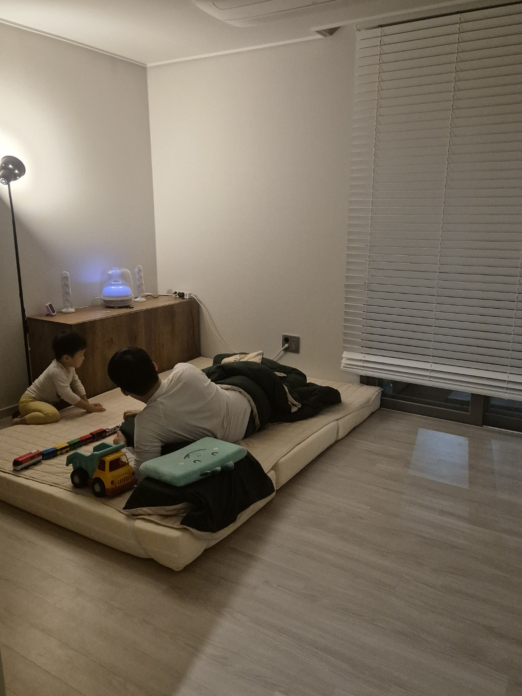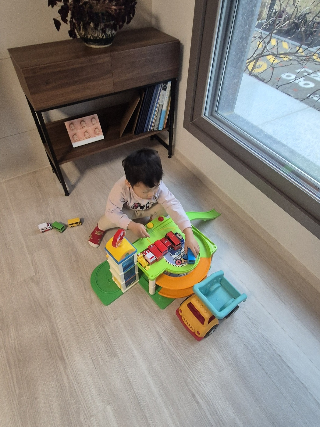 씻고 난 뒤 도하는 오후 내내 빠져있던 타요 장난감을 잔뜩 챙기고는 아빠에게 같이 놀자며 쫓아다니기 시작했다.