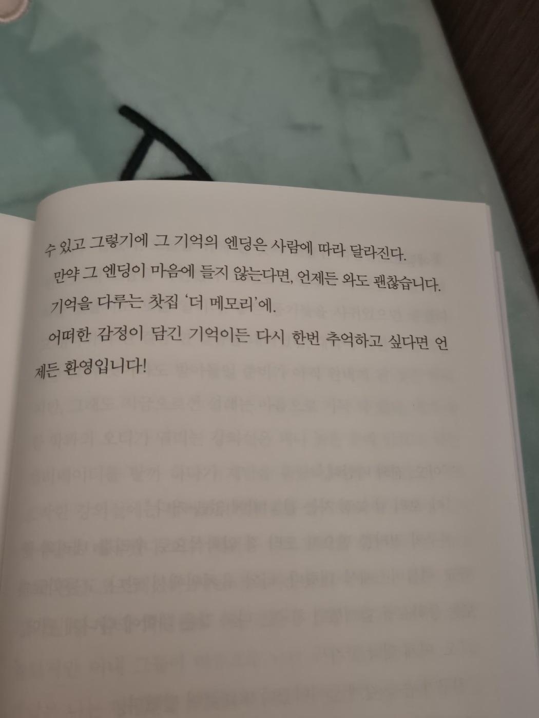 '더 메모리'라는 책은 잊고 싶거나 바꾸고 싶은 기억을 다루는 찻집의 이야기가 나오는 소설이다. 내용이 귀엽고 아기자기하니 상상하는 맛이 있어서 금방 읽었는데, 마지막 페이지를 덮는 순간 내게도 지우고 싶은 기억이 있는지를 떠올리게 됐다. 지우고 싶은 기억이라.