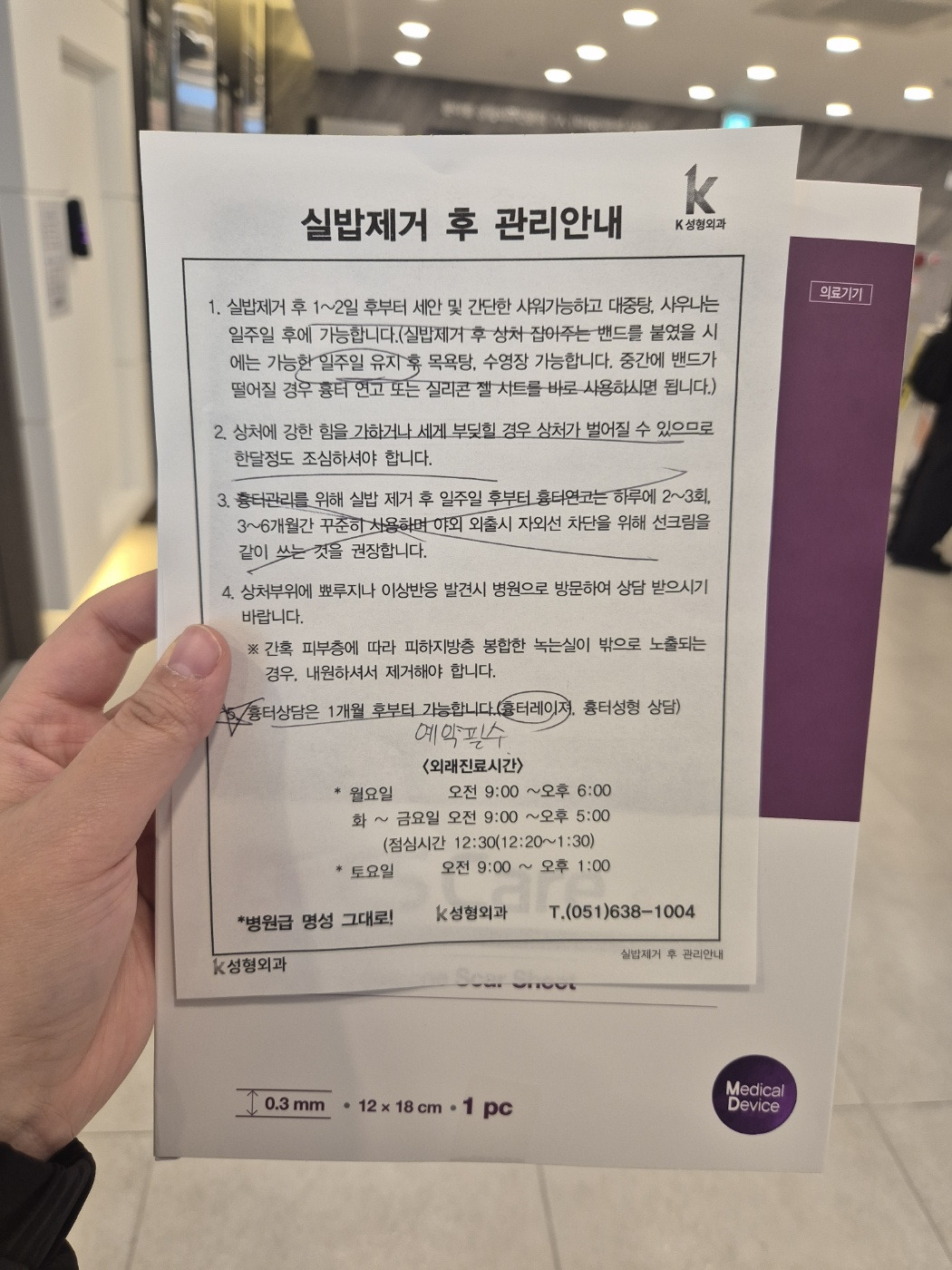 원래는 2일 뒤 실밥 제거를 할 예정이었지만 잘 아물었다며 갑자기 오늘 실밥을 풀게 되었다. 진료실 침대에 누워 본인이 왜 병원에 온 지도 잘 모르는 아이는 울지도 않고 잘 있어 주었다. 실밥을 푸는 짧은 시간 동안 아파하기는커녕 간지럽다며 웃는 도하를 보며, 생각보다 아이들은 강하다는 걸 다시 한번 더 배웠다.
