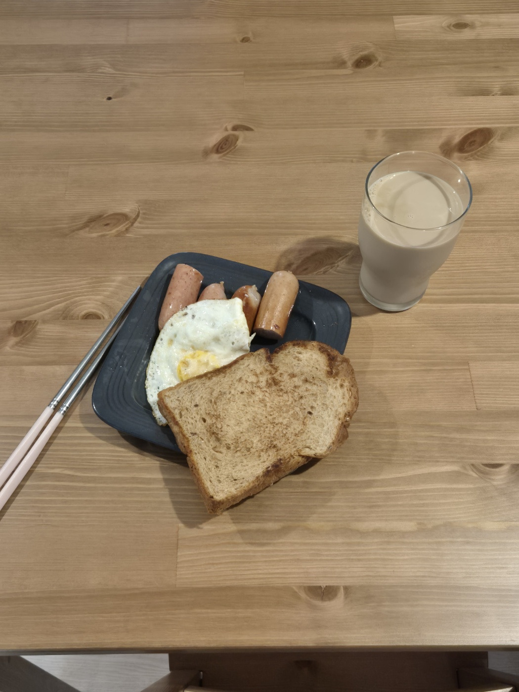 아이가 쪼물쪼물했다는 소시지로 어제저녁은 남편의 볶음밥을 만들어줬고 남은 건 내가 아침으로 먹었다.
