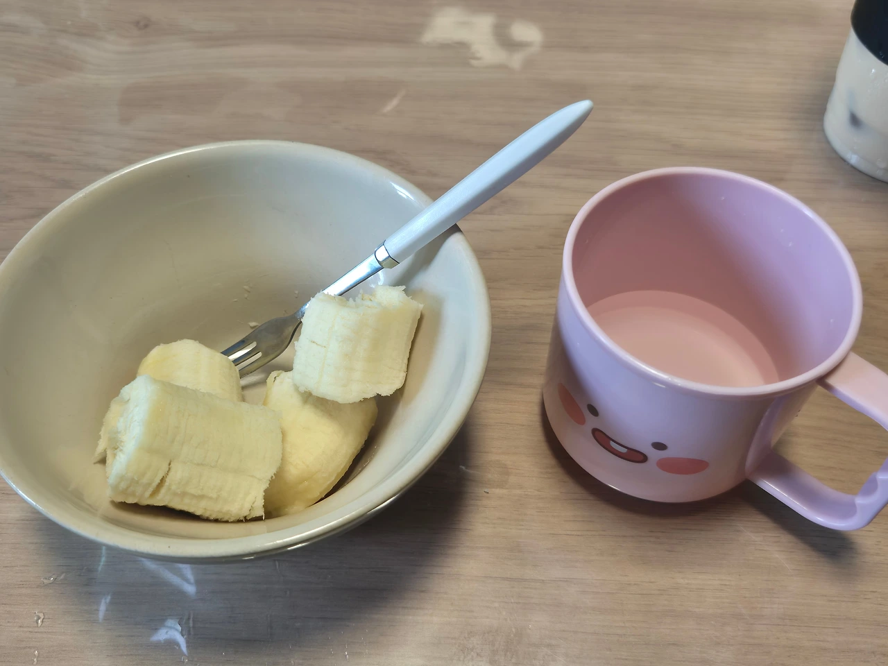 간단히 바나나 하나 까주며 챙겨 준 간식.